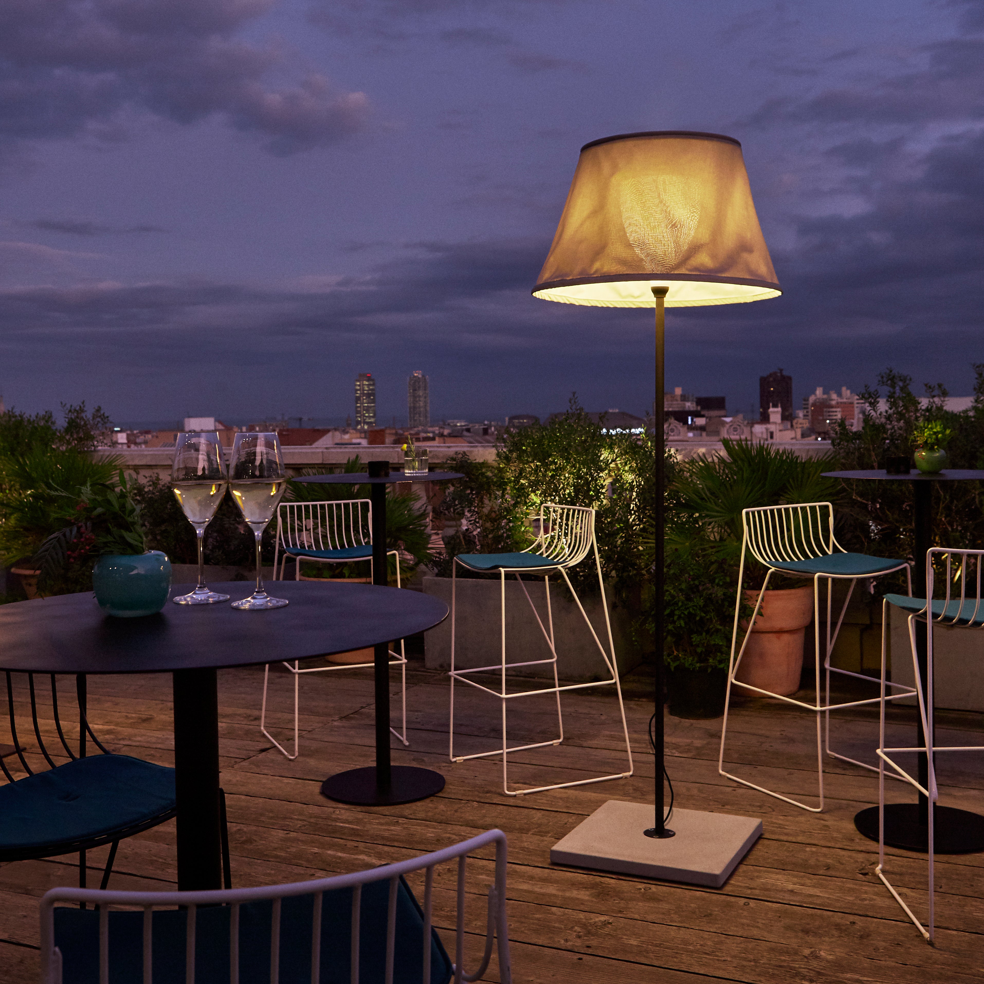 With the weatherproof TXL Floor Lamp, Marset brings a sense of the living room or lounge to outdoor terraces, gardens or even a balcony. Designer Joan Gaspar specified an oversize pleated shade in a PVC-coated textile to provide the kind of warm light usually found only in interiors. In cast iron with a stable square base with panels of slate, the TXL's minimalist lines harmonize with any setting, adding an complimentary architectural fillip.