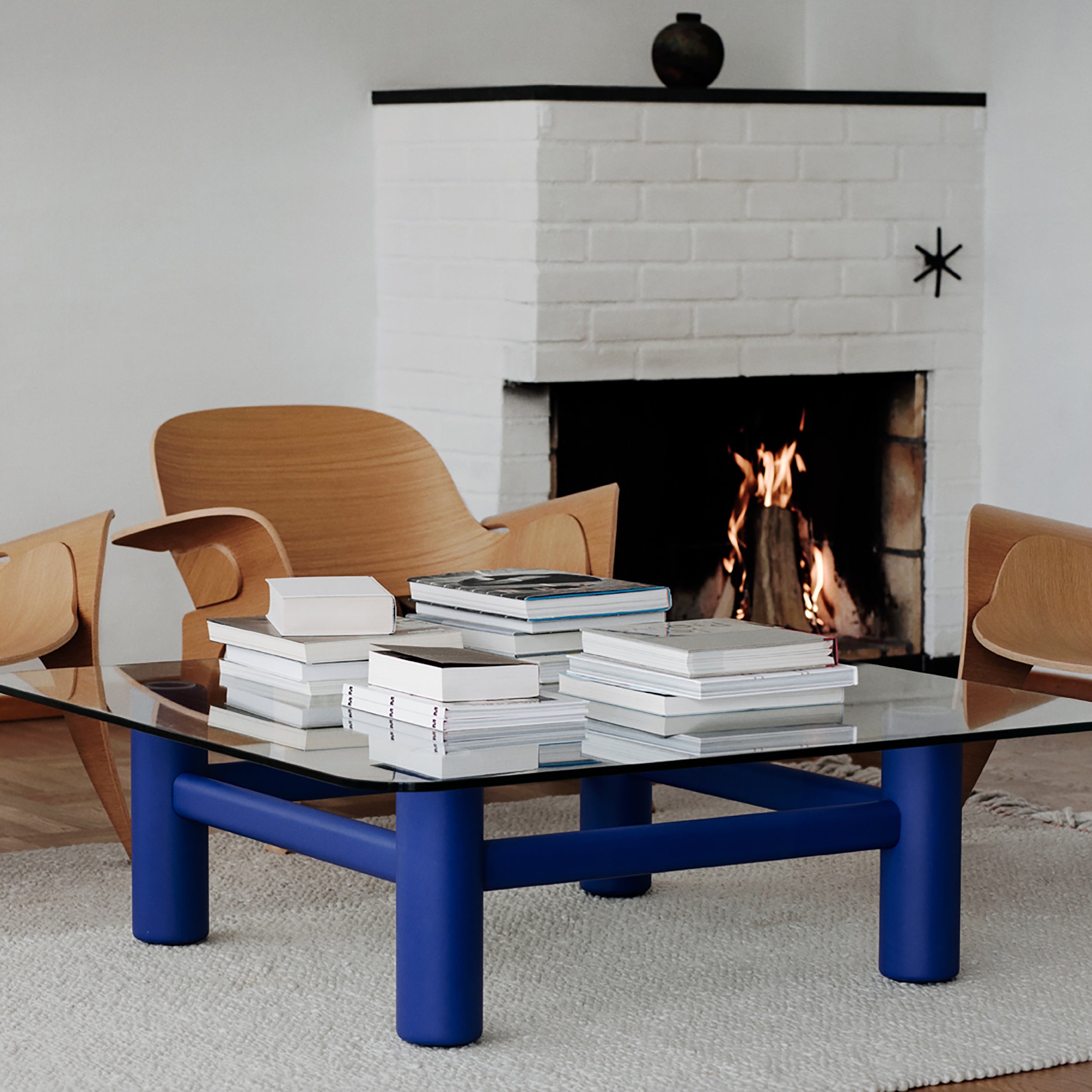 Designer Chris Martin convincingly plays at the margins with his robust coffee table in glass and solid wood. Boundary's oversized proportions clearly delineate an area in the room where it is placed while the transparent surface prevents the impression from being too solid. Slightly thicker than usual at 12mm, the glass top is available as a round or square and the table base comes in natural beech, black stained ash and Massproductions' signature ultramarine blue varnished beech.