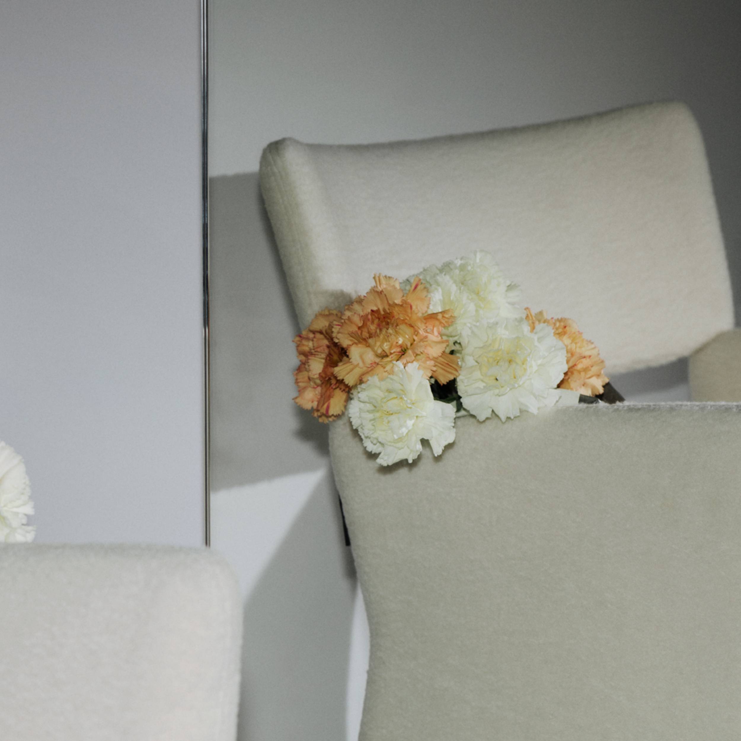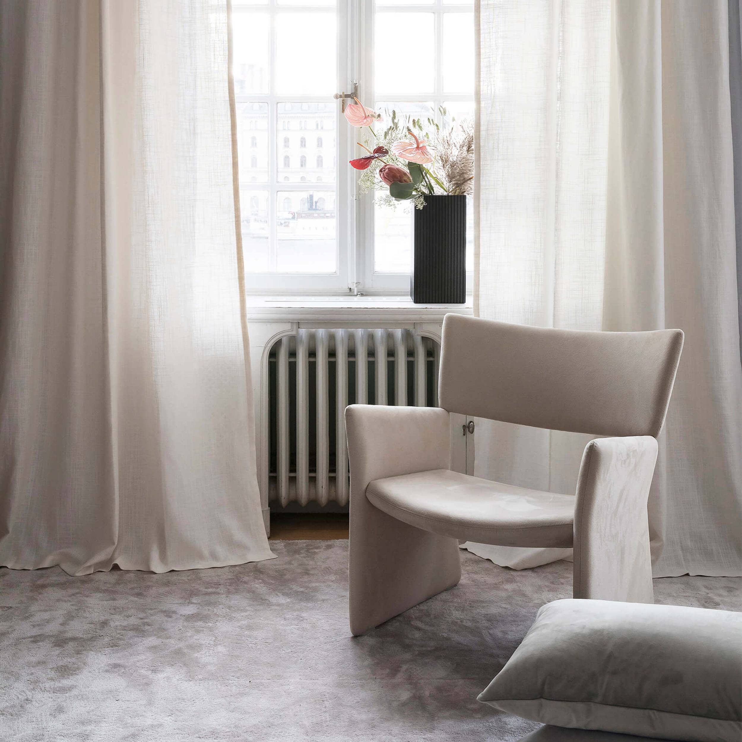 Broader proportions and a lower seat easily translate the Crown template as an inviting lounge chair. Massproductions uses a visual trick to break the usual expanse of an easy chair, with its seemingly floating backrest cleverly engineered with a hidden joint. In the end, it’s all about the comfort of downy foam cushioning, completely upholstered in a choice of premium fabrics.