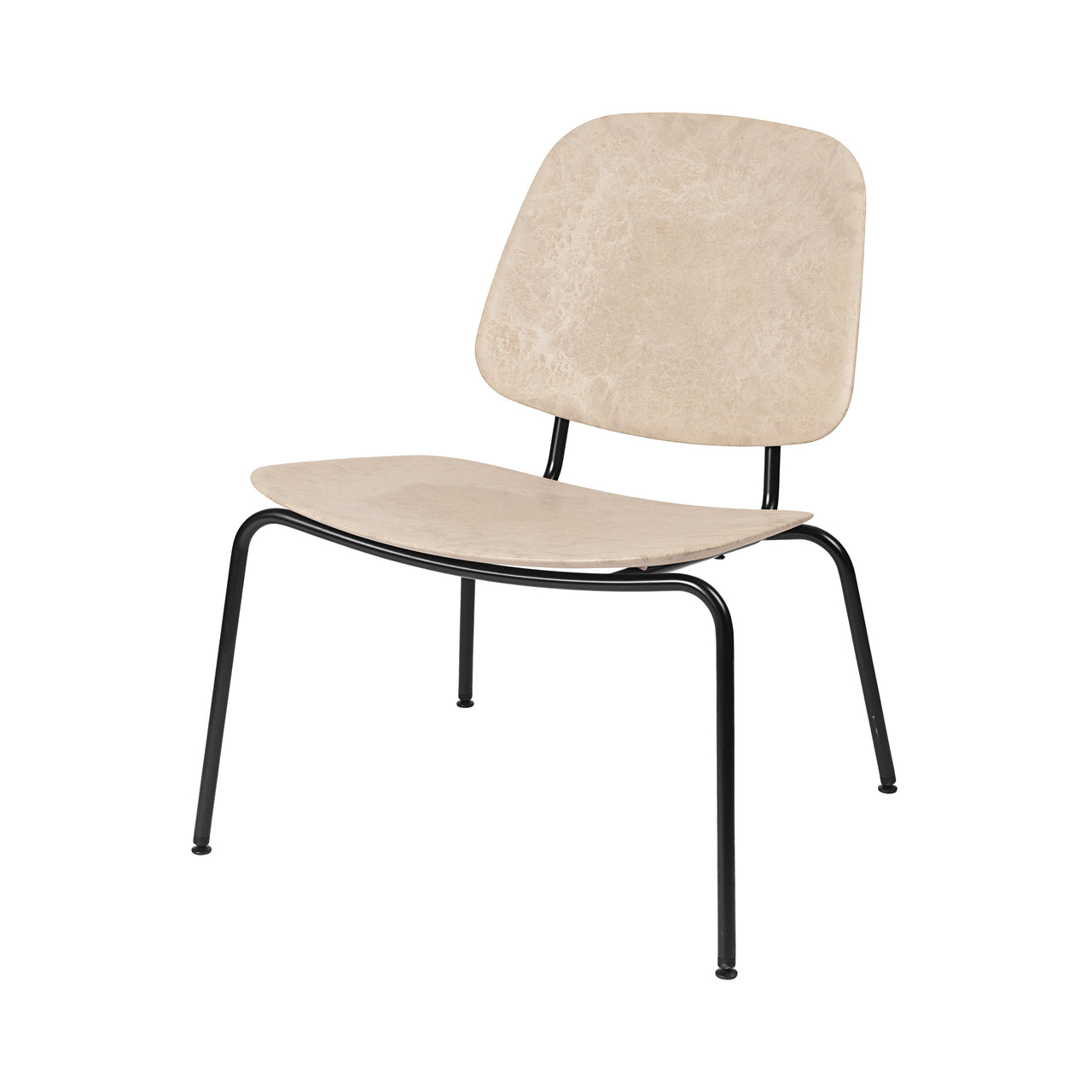 The Compound Lounge Chair features a frame made from 20% recycled steel, supporting a seat and back crafted from Matek®—a proprietary material that blends coffee shell waste, wood waste, and industrial plastic waste. Designed by OEO Studio, the chair's minimalist structure offers comfort suitable for both private and public settings. It is available in various Matek® blends, and is stackable up to four chairs.