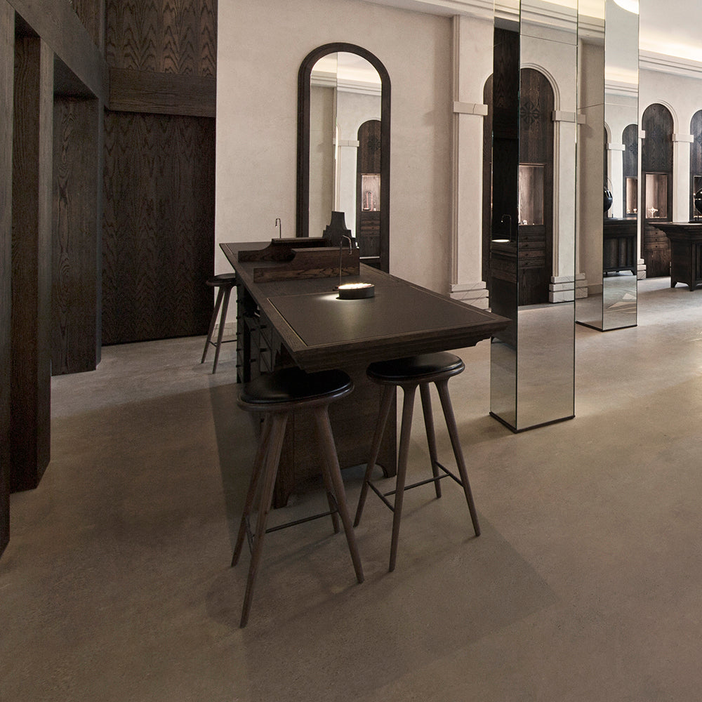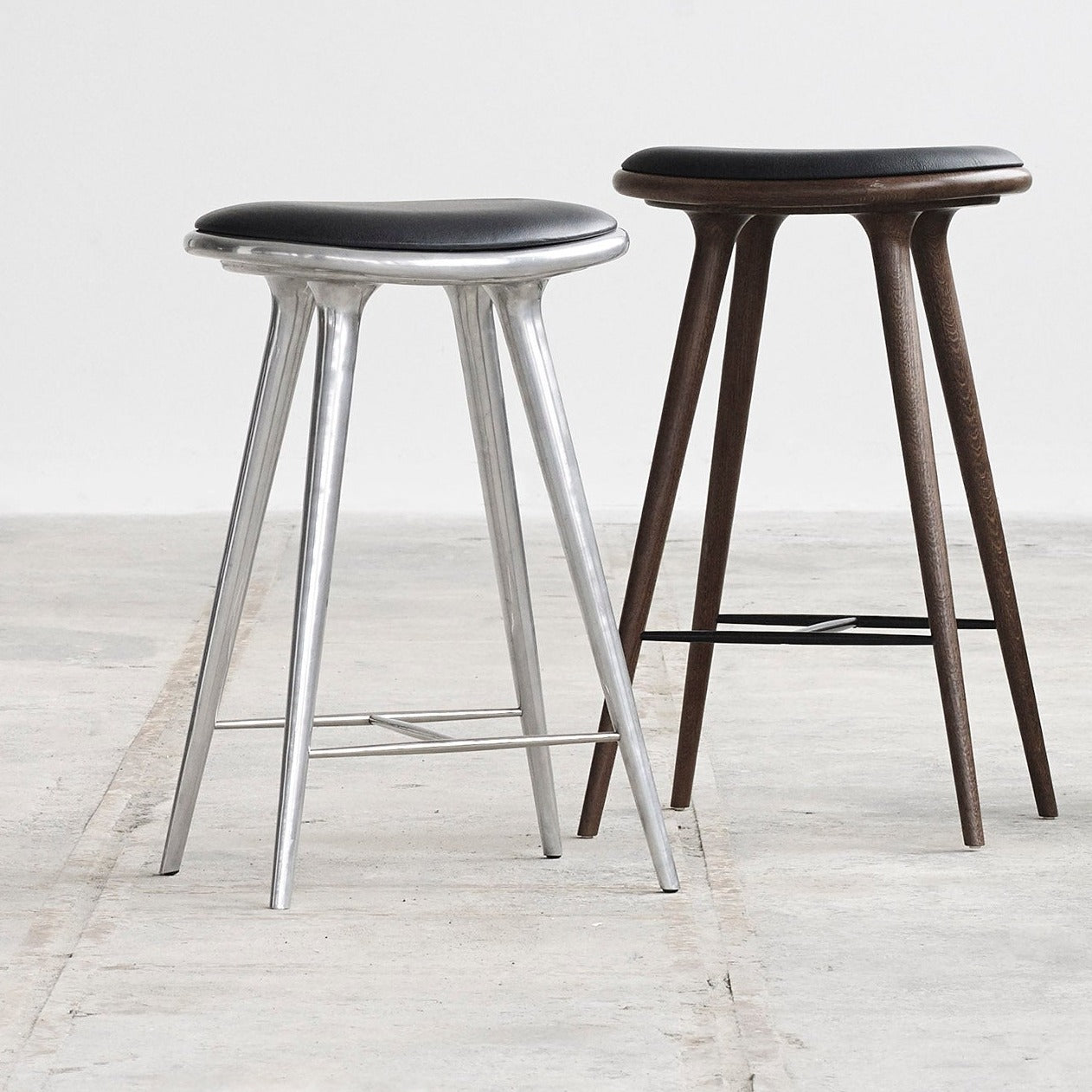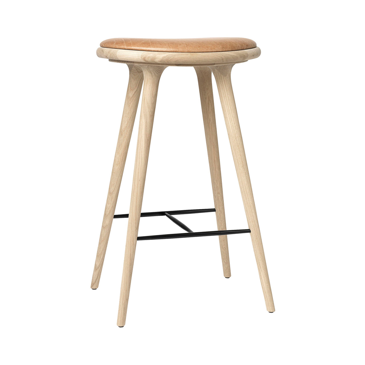 The High Stool from Danish brand Mater beckons with a nuanced take on minimalist style. Its organic silhouette is a subtle update on the classic Nordic heritage from design duo Space Copenhagen. Hewing to Mater's vision of timeless design based on ethical practices, the wood is FSC-certified denoting responsible forestry and it's finished with a water-based stain free of chemicals. In bar or counter height, with padded seat in fine leather.