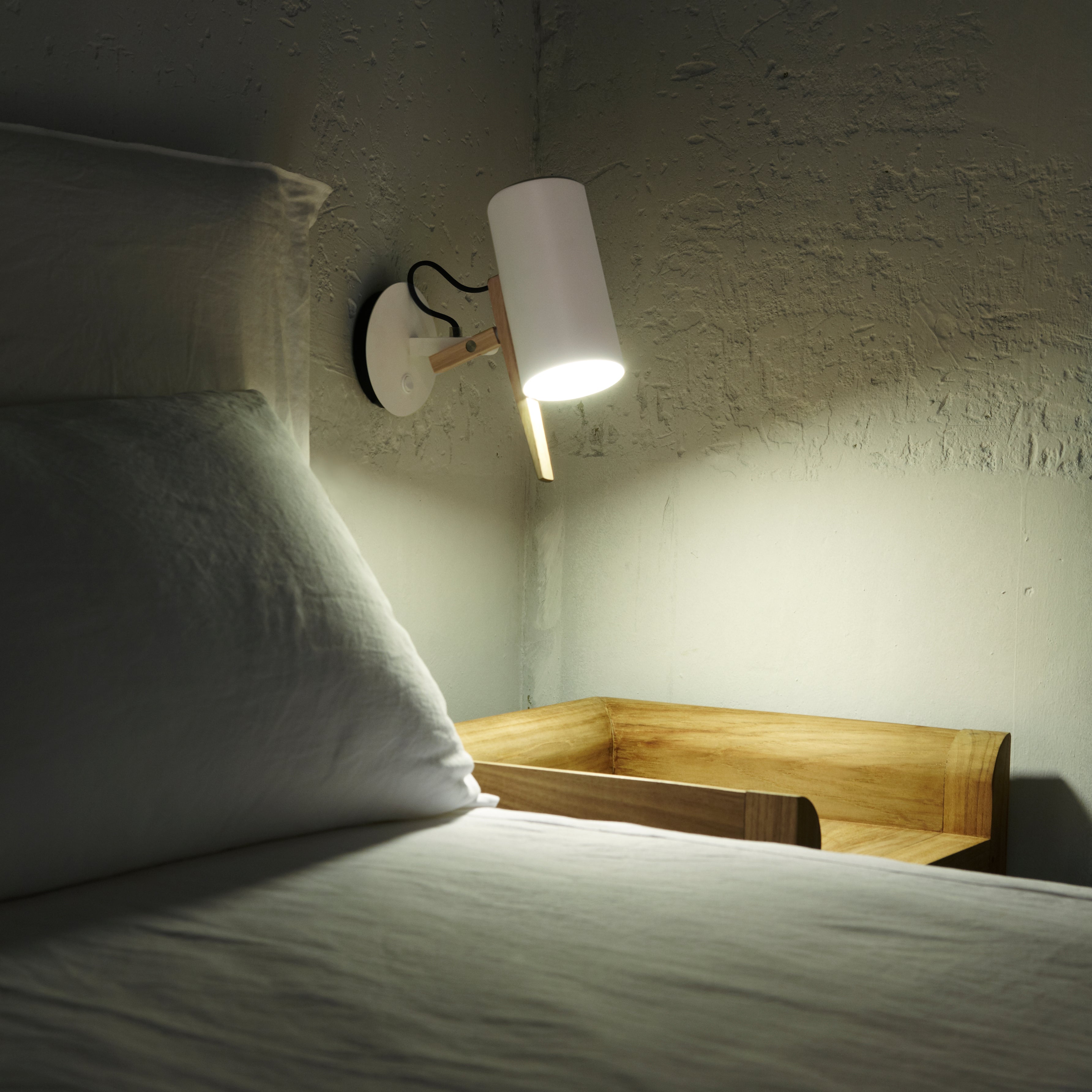 The Scantling Wall Light extends Marset's lighting range that contrasts cool metal with warm wood. It's an untraditional pairing yet it's named with an allusion to a traditional unit of measurement for cutting wood. London designer Mathias Hahn has fashioned a clean-lined geometric take on lighting, marked by functional craftsmanship. Finely calibrated, the hinged wooden arm permits the shade to be fully adjustable without springs or counterweights.