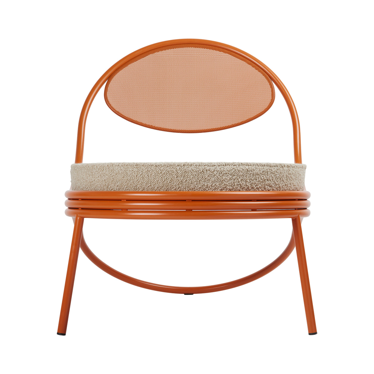 Seemingly designed with a single pencil stroke, this graphic black metal lounge chair was created in 1955 by Mathieu Matégot. With a curved tubular frame that surrounds the rounded seat and back, Copacabana gives the illusion of a continuous line, ending with the chair’s rear legs. Low to the ground with an angled back for relaxation, it’s exuberance suits both hospitality lounge areas and residential settings.