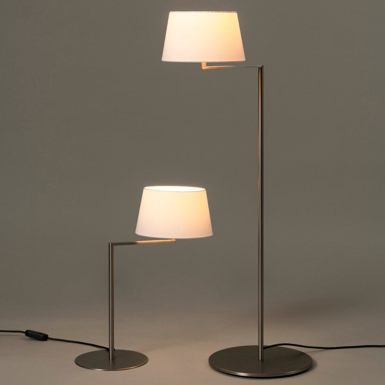 With smartly articulated functionality and optimal height, Americana's floor lamp version also makes the perfect companion for reading. Designed by Miguel Milá in the mid-1960s, it's built around a satin-nickel rotating arm with an elegant white linen shade that softens its updated LED illumination. With an admiring nod to George Hansen's legendary swing arm style a decade earlier, Milá streamlined the notion to gently swivel the light nearer or further away, while the wide metal base stays put.
