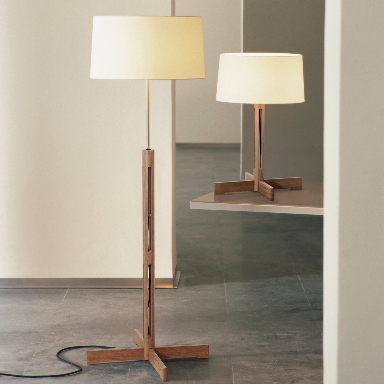 Miguel Milá employs exacting industrial craftsmanship in his floor lamp with a spare cylindrical oak column that gracefully supports a clean white linen shade. The designer’s 1974 light was originally conceived for the headquarters of Barcelona’s Fostering Arts and Design Association, a pioneering league of artisan and architect advocates for Spanish architecture and projective arts. Available in both fixed and adjustable models, FAD brings a warm glow of dimmable LED illumination to any setting.