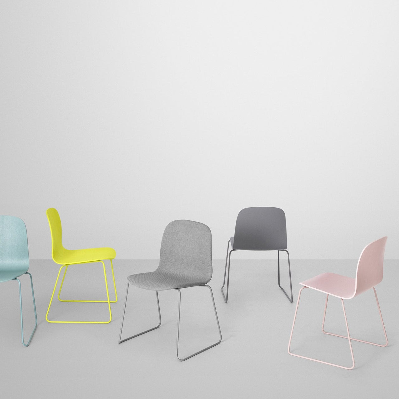 Muuto's family of seating under the Visu Chair moniker keeps expanding and the Sled Base: Upholstered model now takes a place in the line-up. Mika Tolvanen, of the Finnish Rehti Group, spent 2 years perfecting the original design (aptly named Visu—the Danish word for "precision.") As it turned out, his unblinking specificity ultimately led to Visu's many versions but it was his emphasis on workability that empowered the concept. "I do not have a dogma or 'ism' but I believe good design comes from understanding materials and from a desire to improve functionality," Mika says. "An object can be complex in its variety of functions, but doesn't have to be complicated.