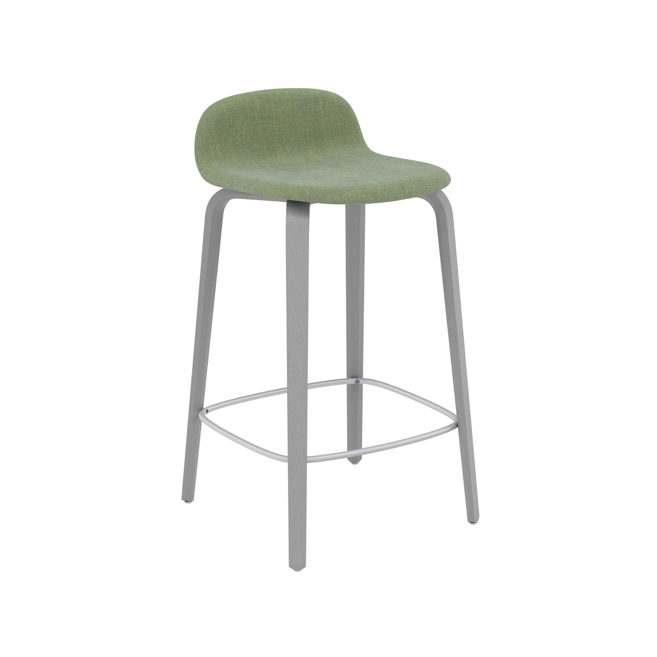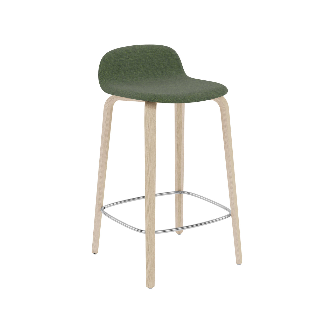 At counter height, Studio Tolvanen’s upholstered Visu makes a refined counterpart for seating in the home or contract settings. The casually elegant stool with a seat clad in a premium textile or leather, takes its unique curved shape via form-pressed oak. Wooden legs in lacquered oak or ash with a similarly graceful bend feature a discreet steel footrest for comfort.