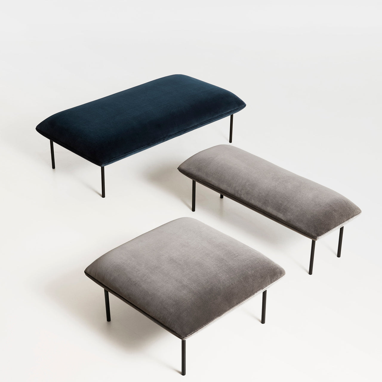 Finnish design star Mika Tolvanen believes functional pieces can also be beautiful as this plushly upholstered bench aptly illustrates. Nakki has amply proportioned and firm padding for long-lasting comfort. It gets a welcoming lounge-like feel from softly rounded proportions that contrast with its spare metal legs.