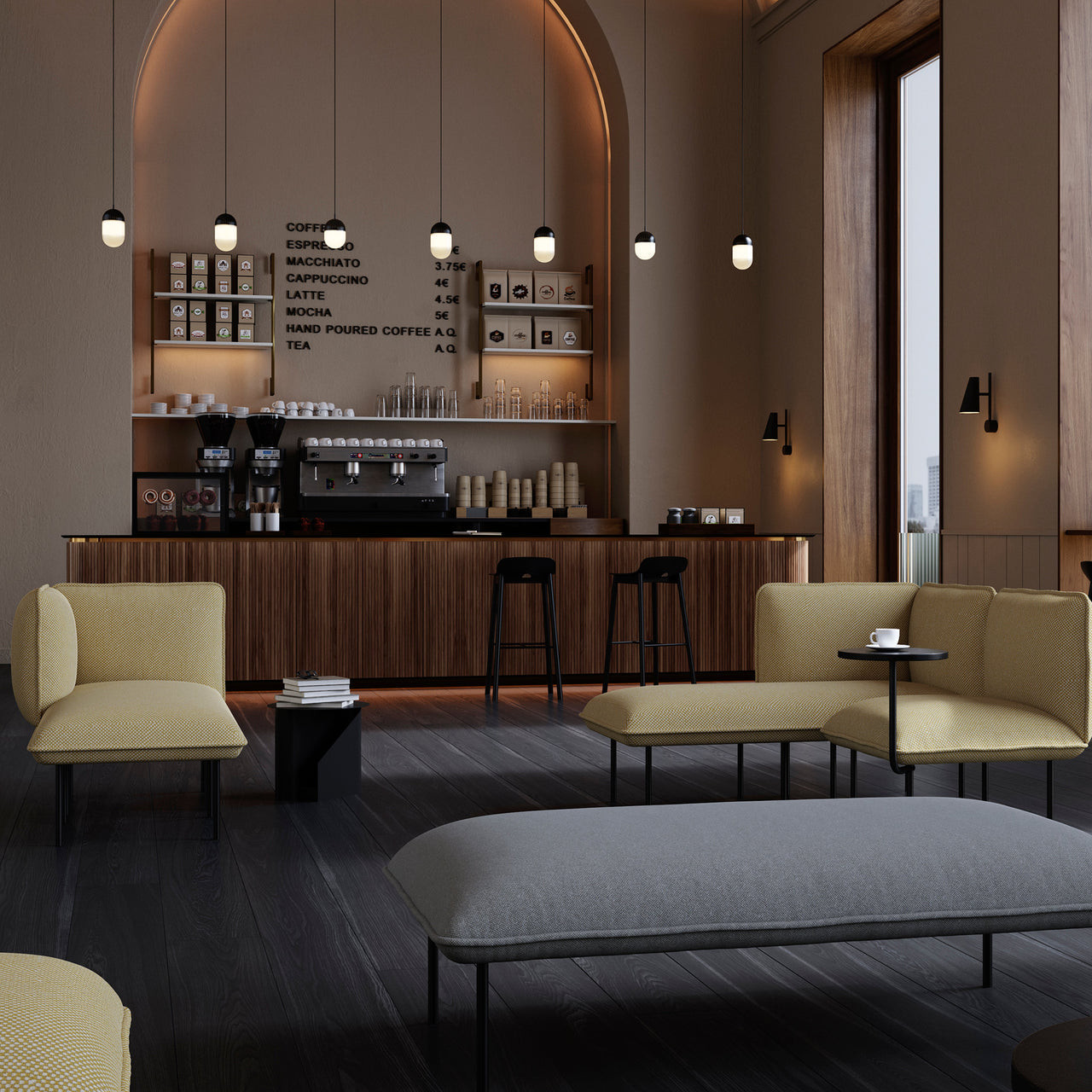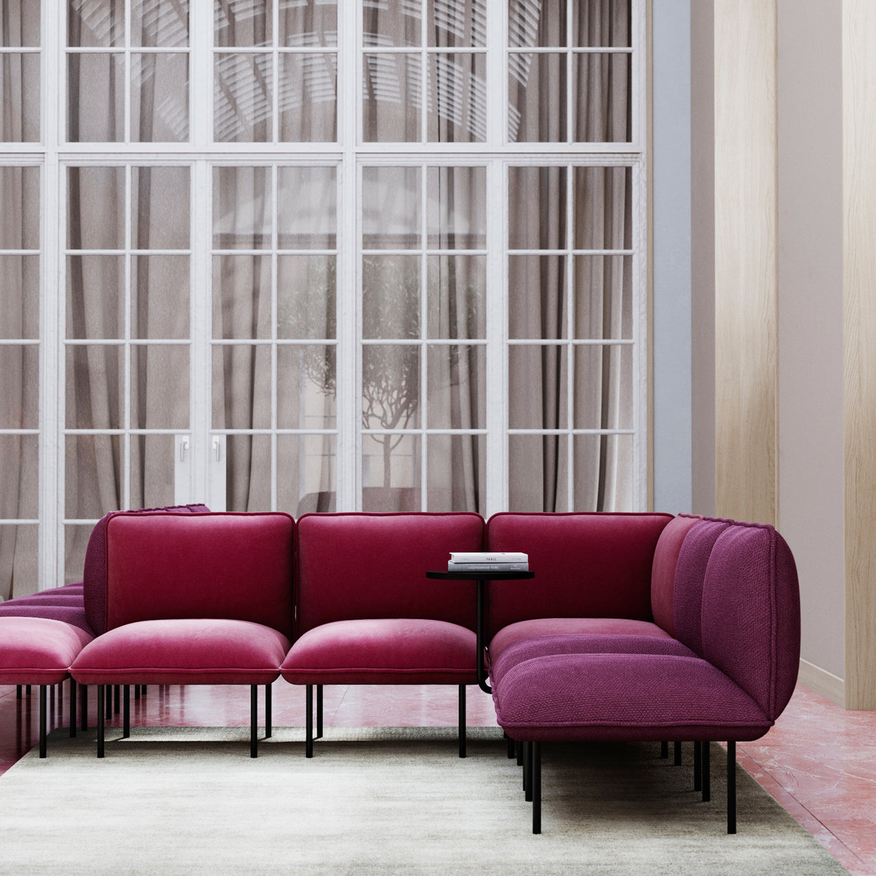 Woud adds an essential corner unit for configuring sectional seating—with an optional table for setting down a drink or reading matter—in its Nakki Lobby range. Finnish designer Mika Tolvanen's comfort-inducing proportions in a choice of upholstery materials make the adaptable modular sofa highly suitable in hospitality spaces, hotels, and coworking setups.