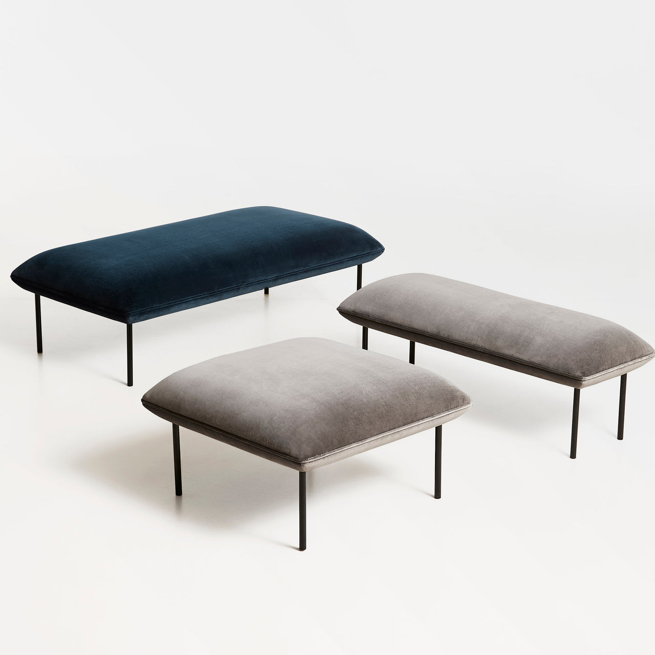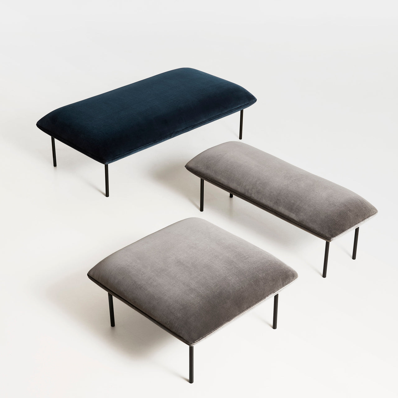 This attractively elongated ottoman could serve as a place to put up sprawling feet, as extra seating or even sub in for a coffee table. Expressing both plushly proportioned comfort and airy minimalist style, Nakki from Finland’s Mika Tolvanen suits many a living space. The designer believes in functional pieces, he says, “but this does not mean that they cannot be beautiful.”
