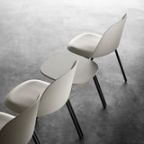 To place a cup of coffee or written materials, Miniforms adds a low connecting table to link with its Mariolina molded polypropylene seating. Fashioned in birch plywood with a high-tech laminate top, its base is styled in the same lacquered iron rebar as the companion Conference Chair. From home to office, the collection developed with design E-ggs proves the wide versatility of the Mariolina template.