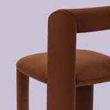 A distinctive cross-legged frame and squared backrest give this chair a bold, structured presence. The Amia Chair features a fully upholstered seat with rounded joints that soften its geometric shape. Available with or without solid ash armrests, it offers a broad selection of fabrics, providing a range of textures and tones.