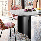 With luxuriously expanded proportions, Barry makes a dramatic anchor-piece for either residential or contract use. Defined by its signature "potato chip" metal legs that curl distinctively around themselves in a choice of lacquer or metallic finishes, Miniforms' table intrigues with its visual play of proportions. The accompanying sliver-like tabletop comes in a range of complementary materialsrich woodgrain, lacquer finish, a travertine-like ceramic or splendid Palladio marble