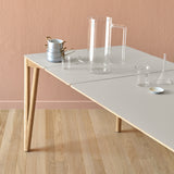With 2 leaves to expand the table for extra guests, Decapos expansive large version makes a versatile anchor for a dining area. Designers Francesco Beghetto and Antonio Manaigo opt for a linear stylishness, with wood legs in a minimalist V-shape. The numerous tabletop options include glass, a travertine-like ceramic and Fenix laminate as well as rich wood varieties in Canaletto walnut, natural oak or black-stained ash. With a range of complementary wood varieties for the base, the table is adaptable to nearly any decor, superbly crafted in Italy by Miniforms.