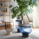 "Showstopper" might be an overused word these days but there's no denying that these dazzling tables crafted from artisanal Venetian glass fills the bill. Since the 1970s, Italian brand Miniforms has been experimenting with mouth-blown Murano glass and now it forms the base of the sculptural tables in luminescent amber, blue-gray or smoky gray. Venice-based designer Matteo Zorzenoni rounds everything out with a beautifully finished wood base and tabletop in a choice of woodgrain or solid-color finishes.