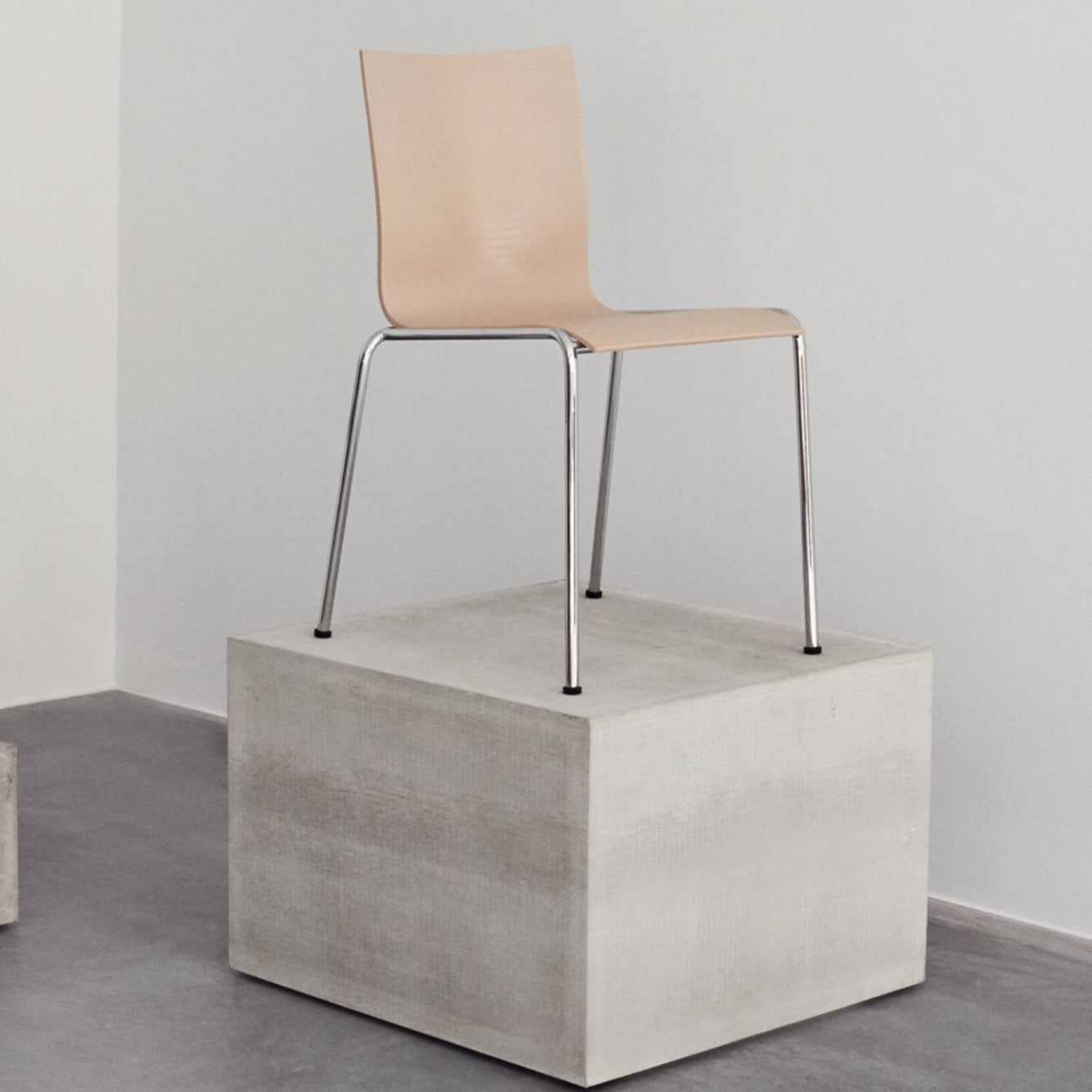In the 4-legged model, Chairik’s engineered ergonomics are matched only by its extraordinary stacking performance, up to 45 chairs on a trolley. Danish industrial designer Erik Magnussen’s pragmatic 1996 compression-molded chair offers solid support without pressure on the spine,  delivering unrivaled comfort. With steel-tube legs in a choice of polished chrome or powder-coated black finish, the chair seat comes in a range of colors and materials—plastic, melamine, veneer, lacquer, lazure or PUR foam.