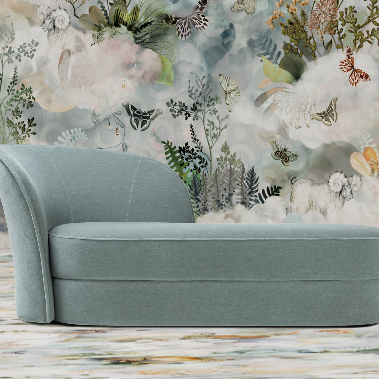 For those who prefer lounging in solitude, Moooi’s extravagantly conceived Aldora also comes as a chaise longue, with a wing for either the left or right side. Inspired by the bounty of nature, designer Cristina Celestino translates the graceful shape of calla lilies as a softly curved sofa, imbued with the eye-catching style of her native Milan. Characterized by its exuberantly sculptural backrest while still maintaining a relatively compact footprint, the seating proves adaptable to a range of environs in a lavish choice of custom upholstery materials.