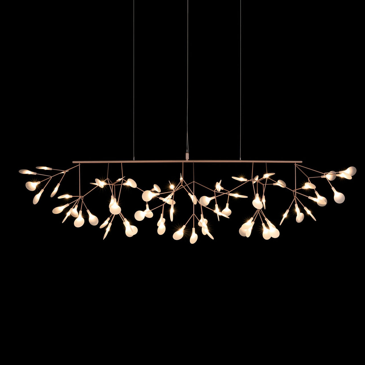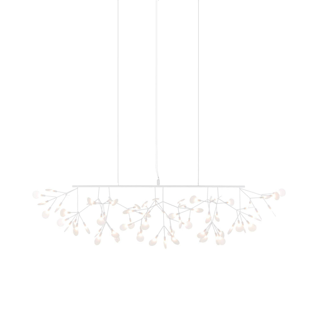 Heracleum III Linear's blossoms gently sweep upwards at either side, making it perfect to hang above long surfaces like a dining table or kitchen island. Like its sister designs, the lean branches are powered by Electrosandwich, a technique of coating conductive layers rather than standard wiring. Marcel Wanders' whimsical overhead bower of bright LED-powered blooms frozen in time, inspired by the flowering plant of the same name, comes in a choice of 4 colorways.