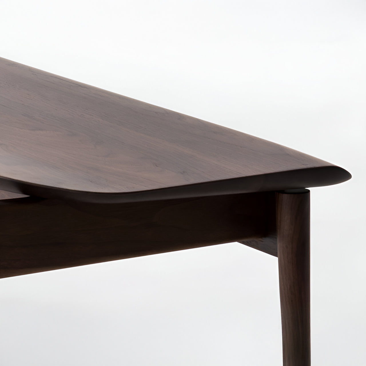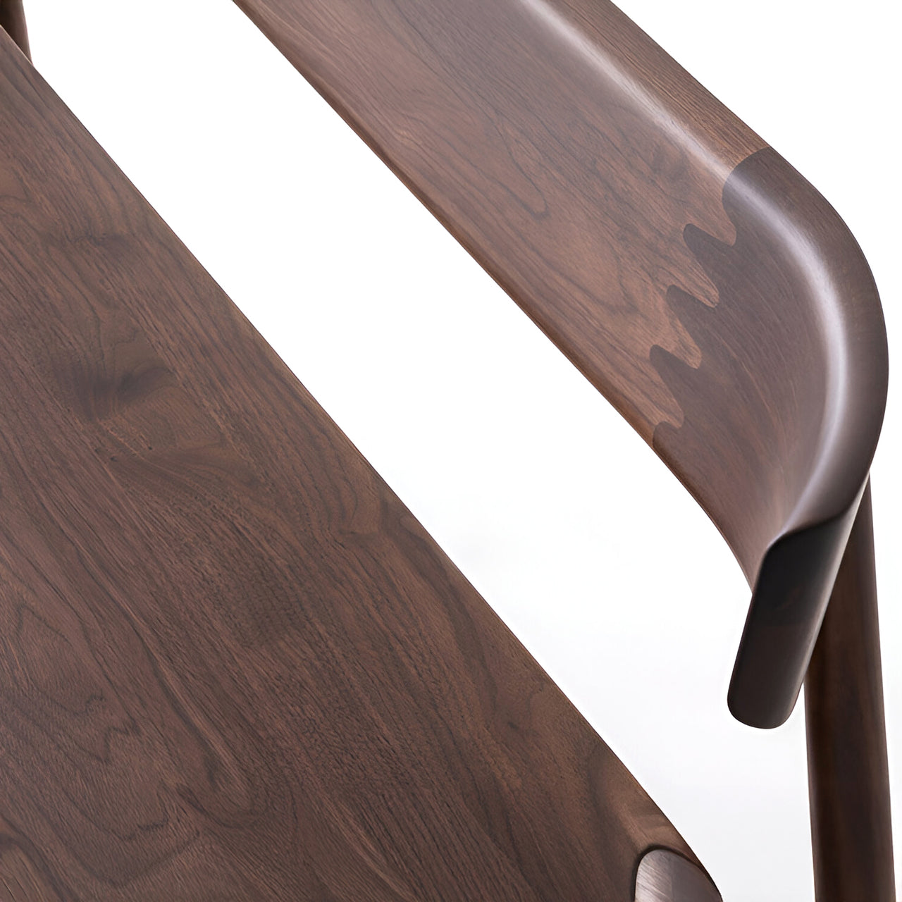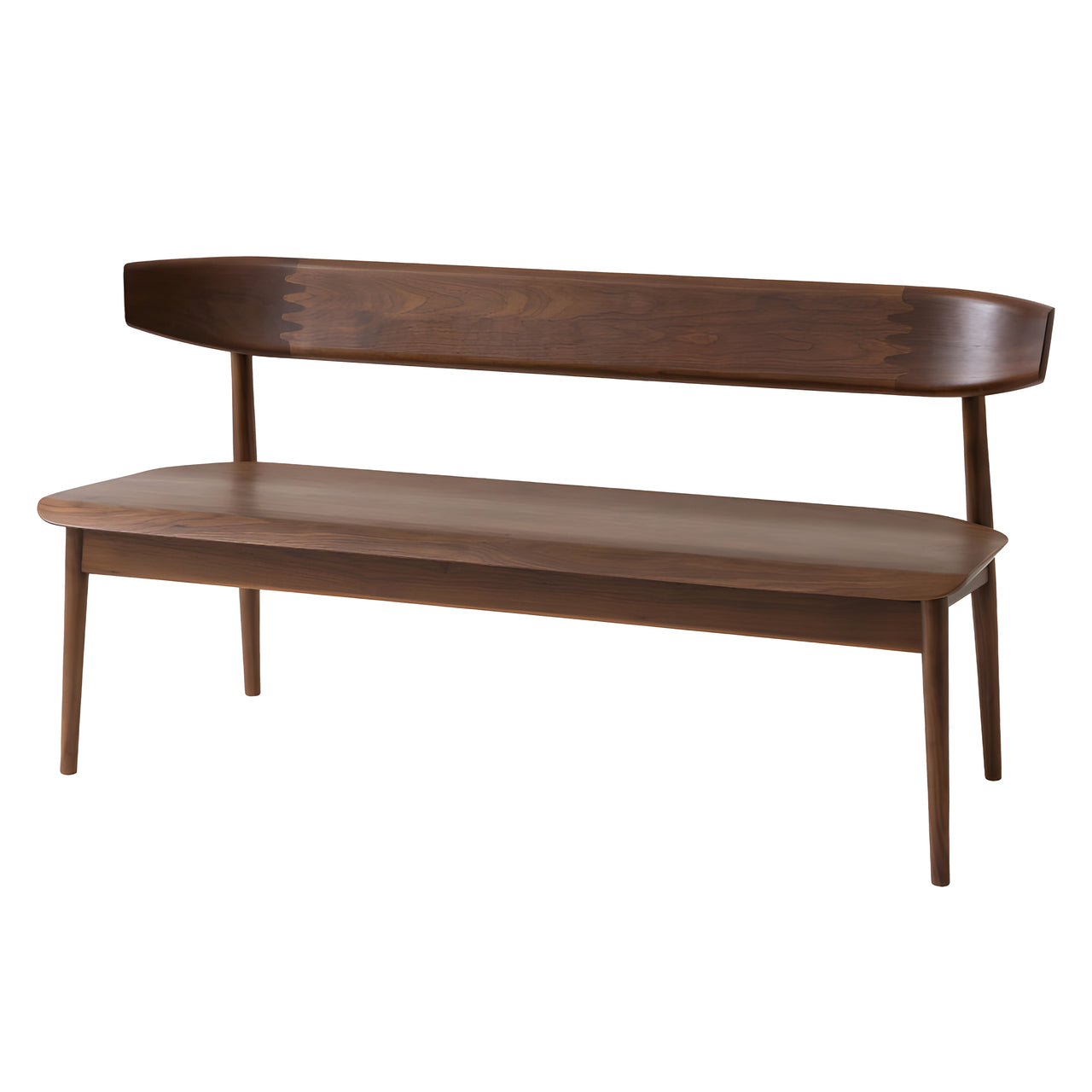 The Seoto Bench’s backrest seamlessly integrates with the rear legs, creating a smooth, unified design. Available in walnut and in 2 sizes, each is finished with a durable polyurethane resin coating.