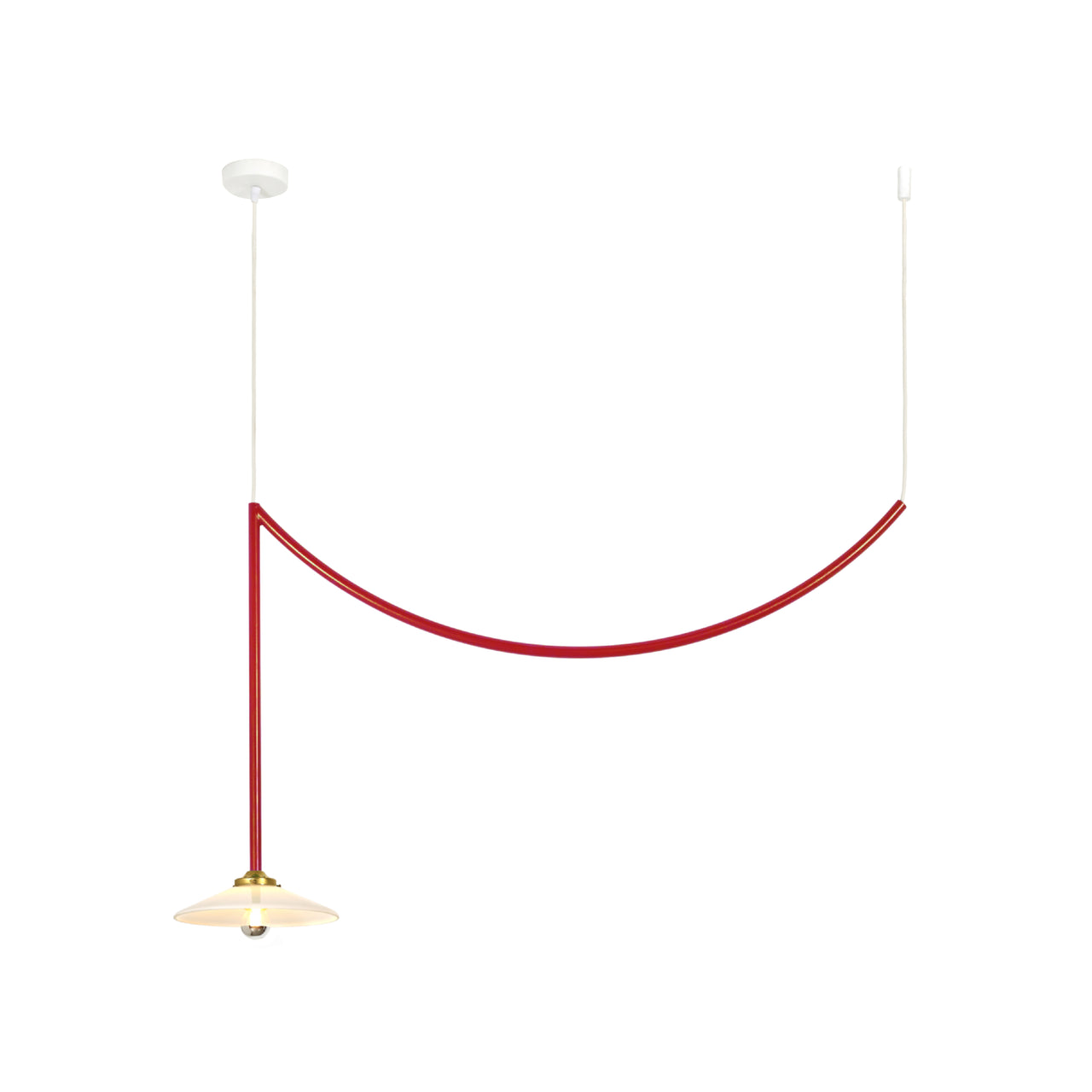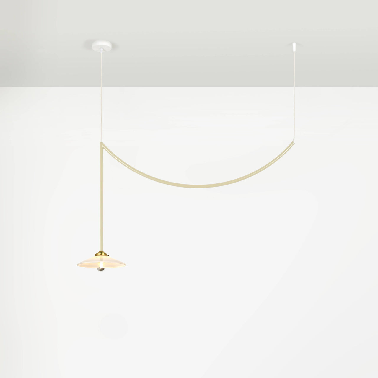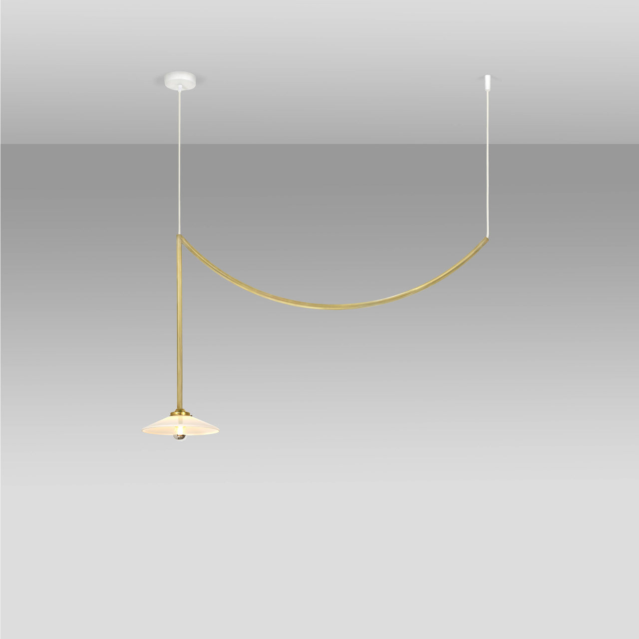 Designers Muller Van Severen’s smaller Lamp n°5 from its antithetical garland series repeats the trompé l’oie styling in solid steel. The duo sees the attention-getting swag as a means of appreciating the characteristics of its surrounding room setting. Conceived to honor the 5th anniversary of Valerie Objects, the ceiling fixture coms in golden bras or a range of bold hues.