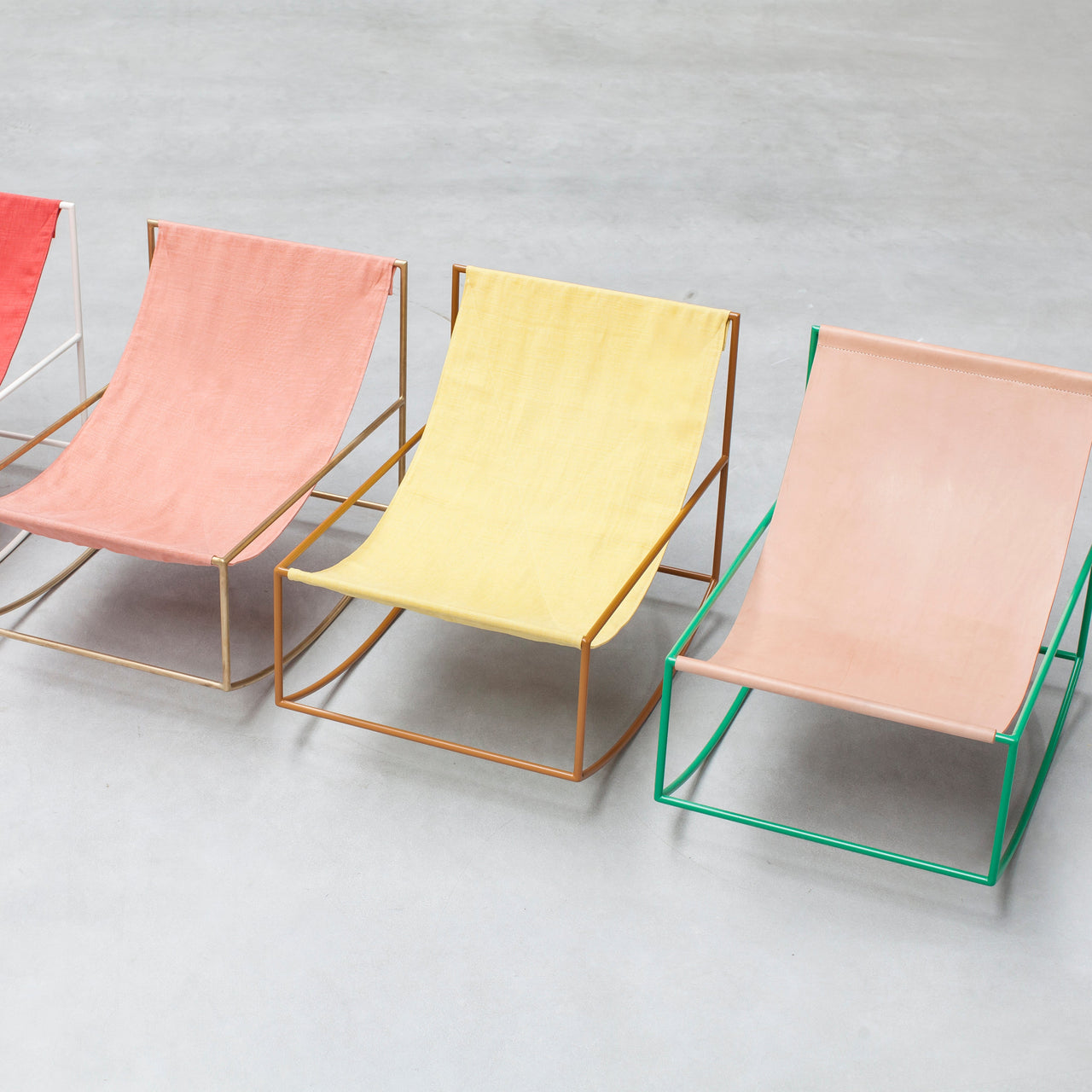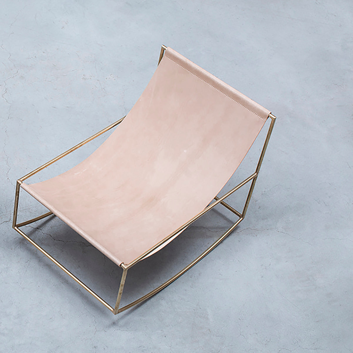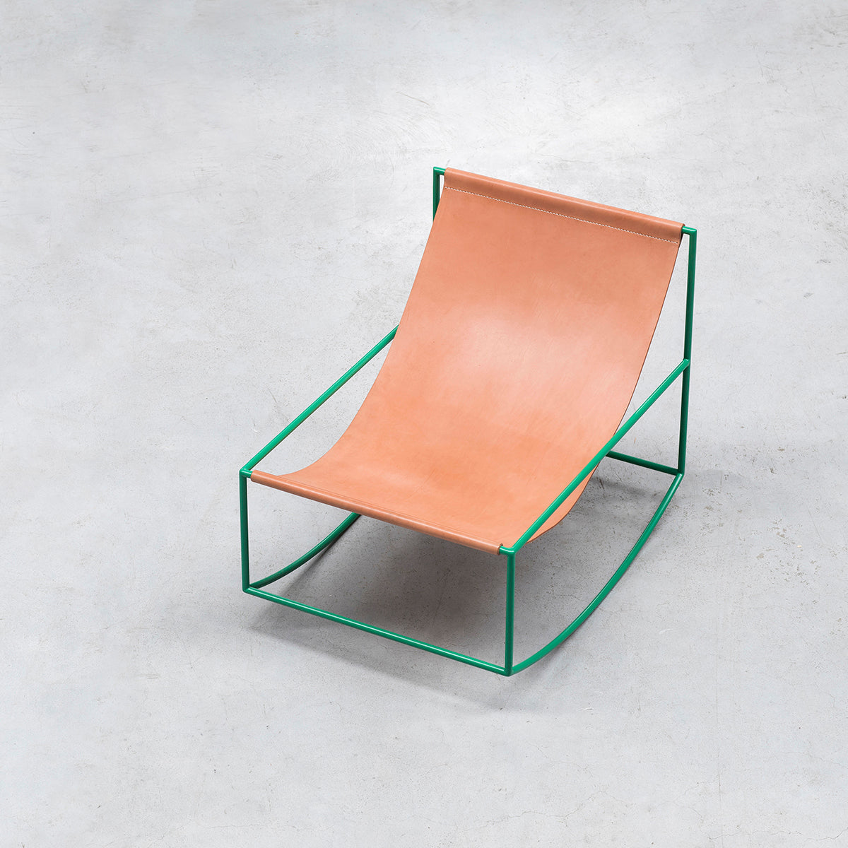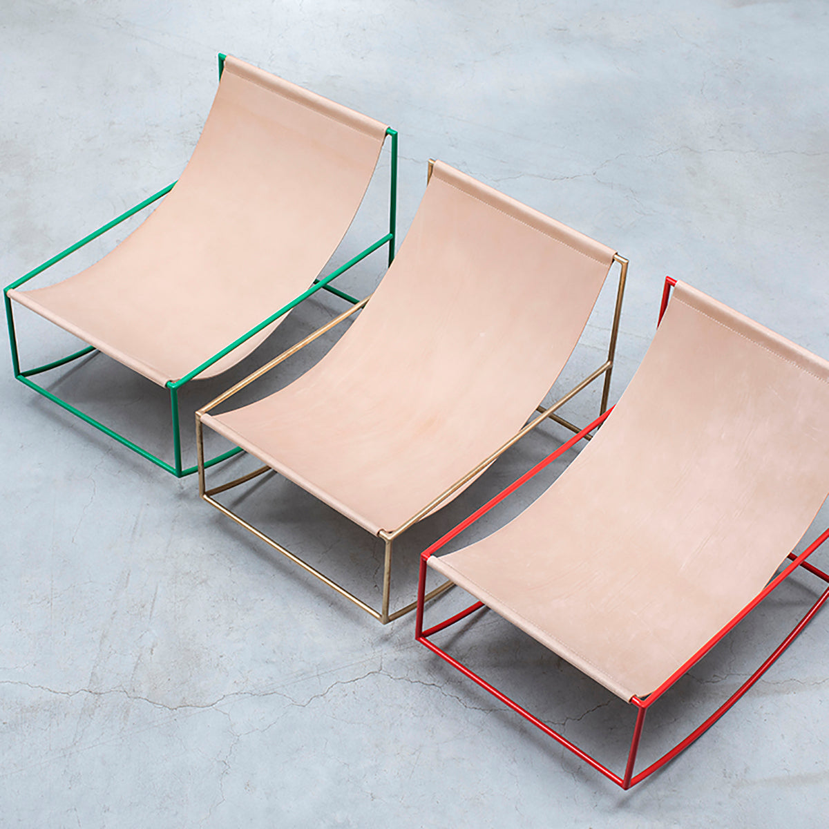 A rocking chair might sound like something from a bygone era but here’s a sleekly updated leather and steel version. Design studio Muller Van Severen creates the seat from a sling of fine natural hide that will age to a darkened patina, suspended from an open steel frame. In any of 3 finishes, the linear quality of the seating melds with surrounding furnishings instead of overtaking them.