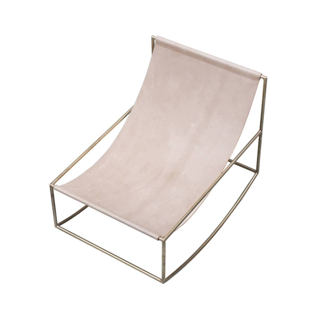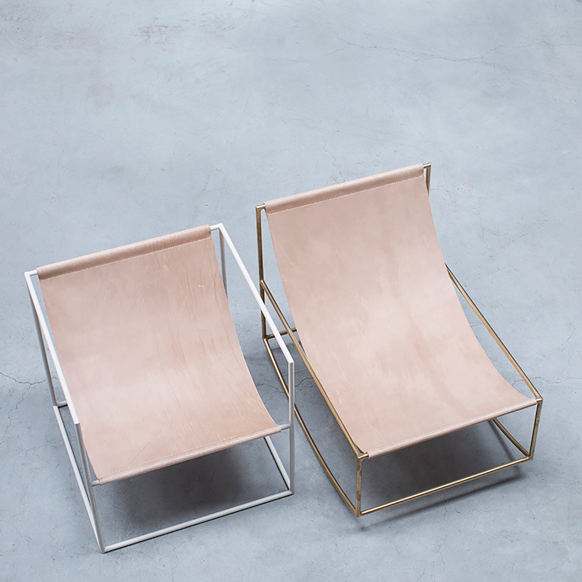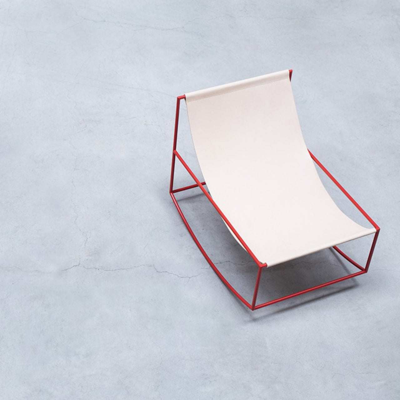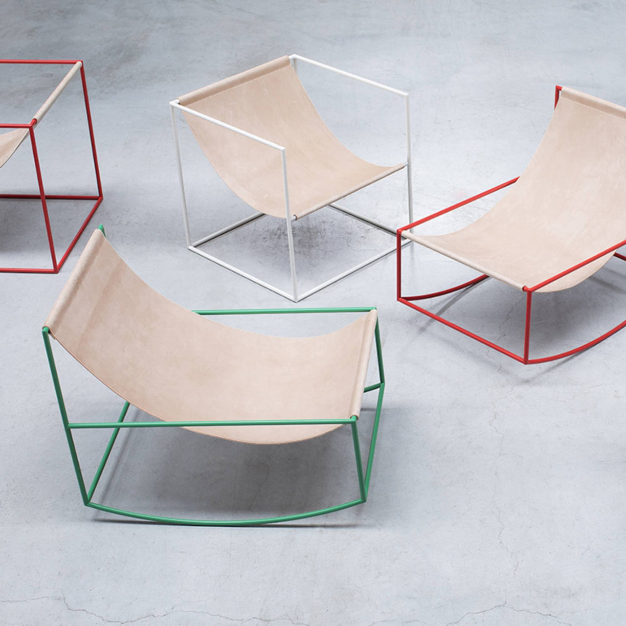 A rocking chair might sound like something from a bygone era but here’s a sleekly updated leather and steel version. Design studio Muller Van Severen creates the seat from a sling of fine natural hide that will age to a darkened patina, suspended from an open steel frame. In any of 3 finishes, the linear quality of the seating melds with surrounding furnishings instead of overtaking them.