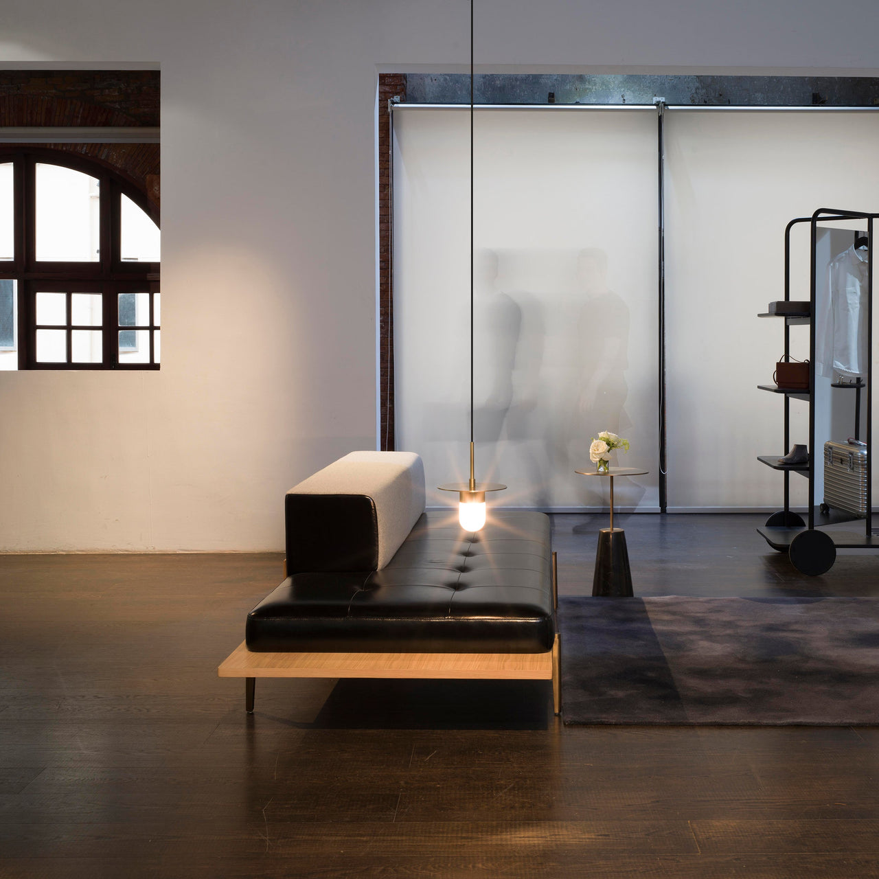 The Half Back model of designers Neri&Hu’s strictly ordered sofa offers a distinctly welcoming open feeling. Aptly named Discipline, the series derives its name from the crisply drawn wooden base for the deeply comfortable cushioning. Supported by delicate metal legs, the platform hovers just above the ground and its carefully calibrated dimensions allow for a seamless configuration of individual units.
