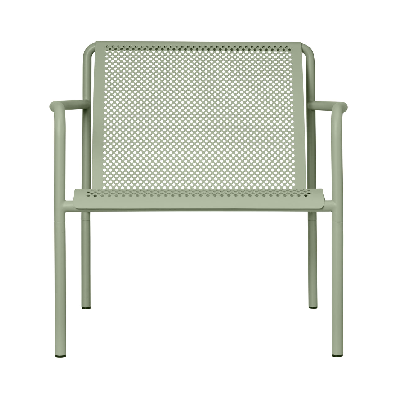 Perforated steel surfaces on the seat and backrest allow rainwater to drain, ensuring the chair dries quickly after wet weather. Crafted from powder-coated galvanised steel, it offers durability and resistance to the elements. The chair is stackable for convenient storage and is available in Cashmere, Dark Chocolate, and Tea Green finishes. The Dapple Chair is part of Ferm Living’s first complete outdoor dining collection.