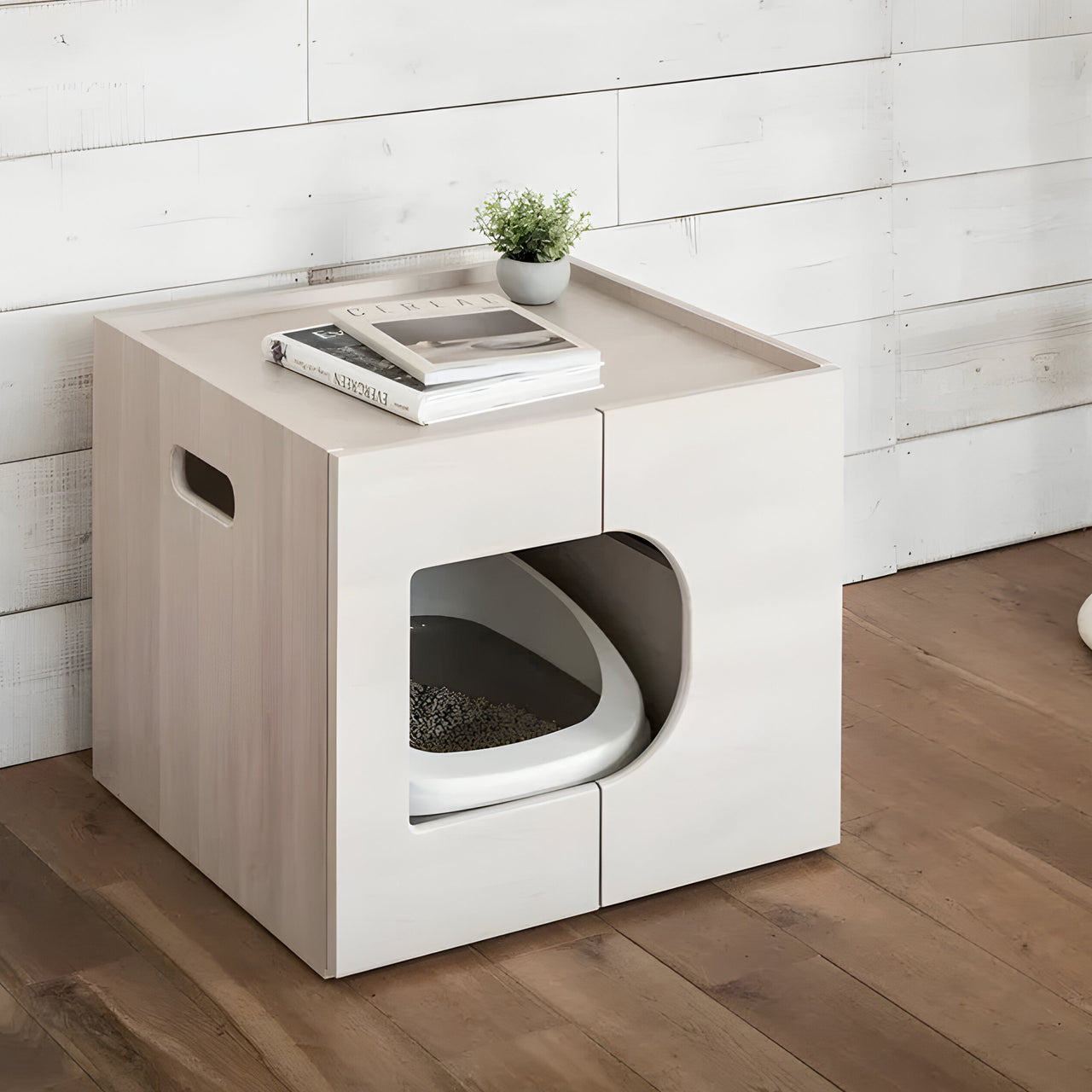 Crafted with precision in Japan, the Karimoku Cat Box offers an elegant solution for discreetly housing a cat's litter area. Made from premium oak or walnut wood, it ensures long-lasting durability and stability. The spacious interior comfortably accommodates one cat, while a separate compartment provides convenient storage for cleaning tools.