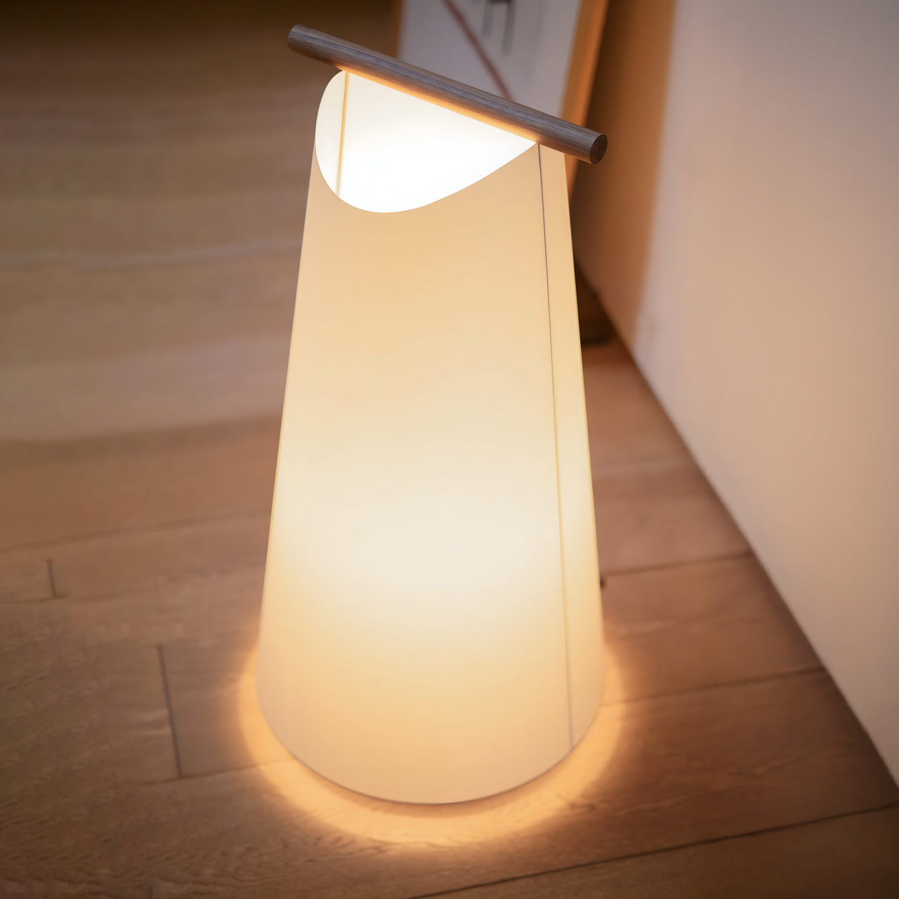 A warm glow filters through the parchment shade, casting a gentle ambience while accentuating the rich tone of finished walnut, black, or oak. Handcrafted in Barcelona, the Catay Floor Light pairs a slender wooden base with a subtly tapered shade, achieving a calm balance between structure and softness.