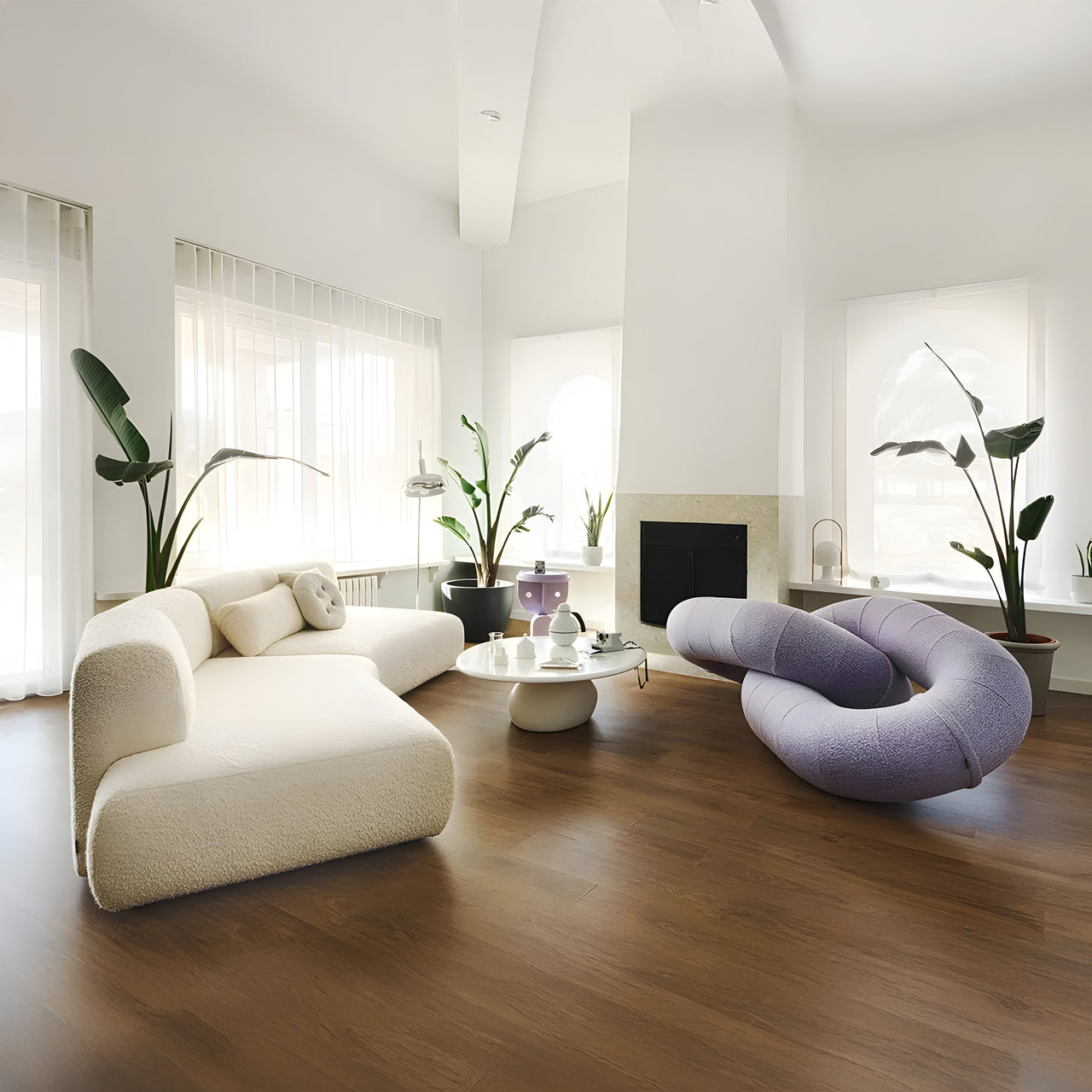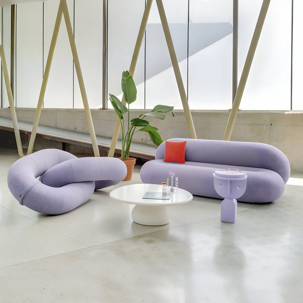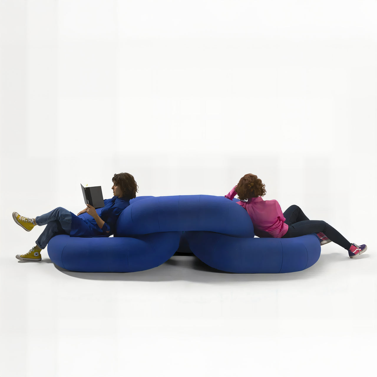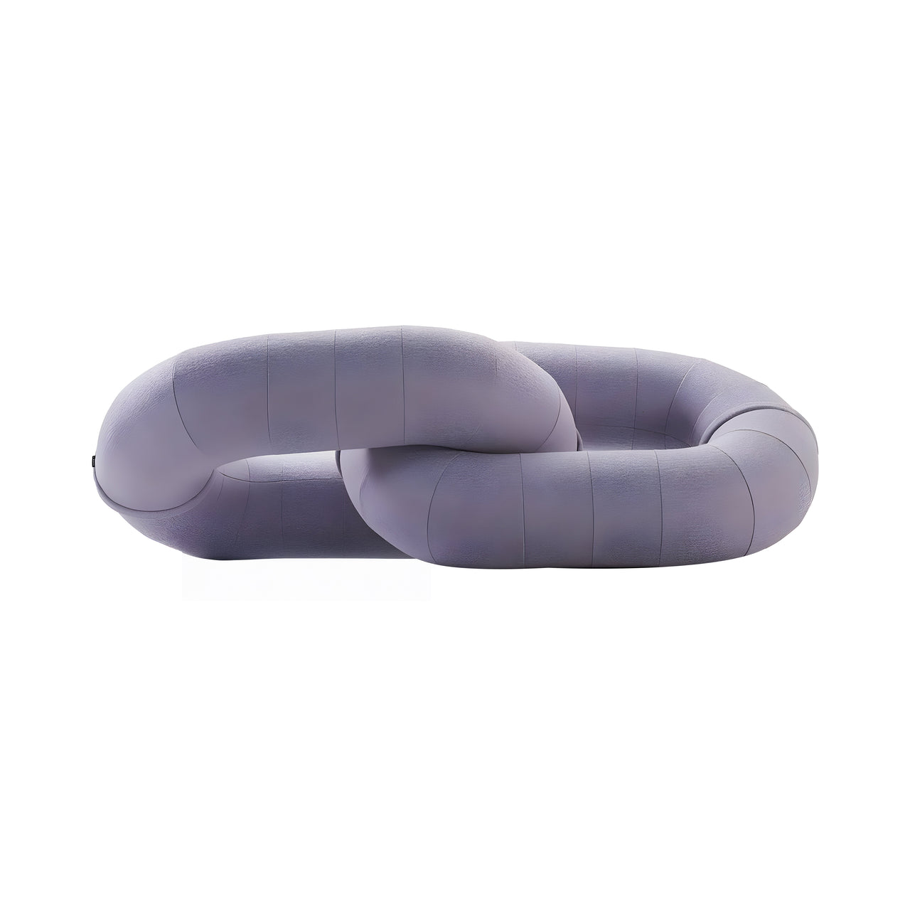 A chain-inspired silhouette with interlocking, sculptural modules defines this sofa designed for playful seating and visual impact. Crafted in Spain, the Link Sofa features injection-molded foam wrapped in fabric, with each link connecting seamlessly via concealed zippers. Available in 2 sizes of 2 or 3 links, making it adaptable to various spaces. Sancal continues its tradition of creating distinctive furniture that combines functionality with artistic expression.