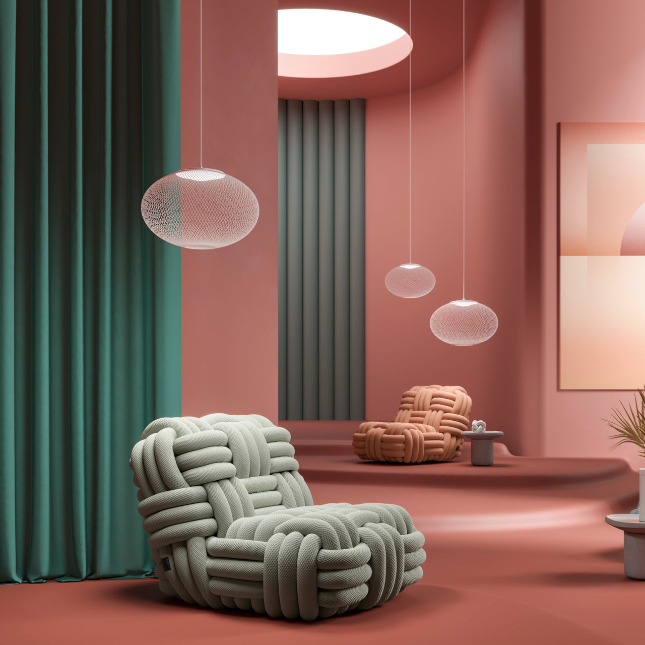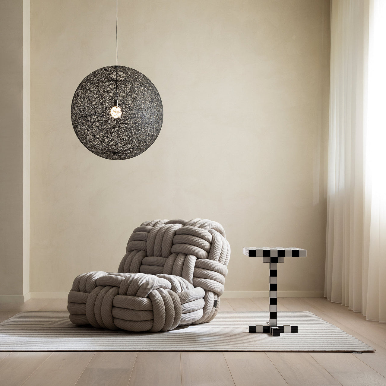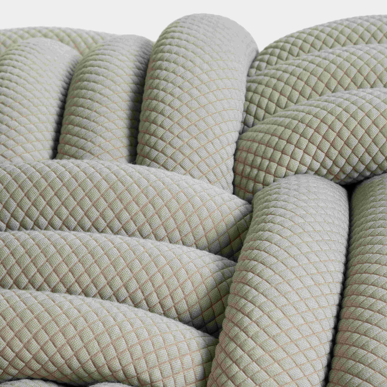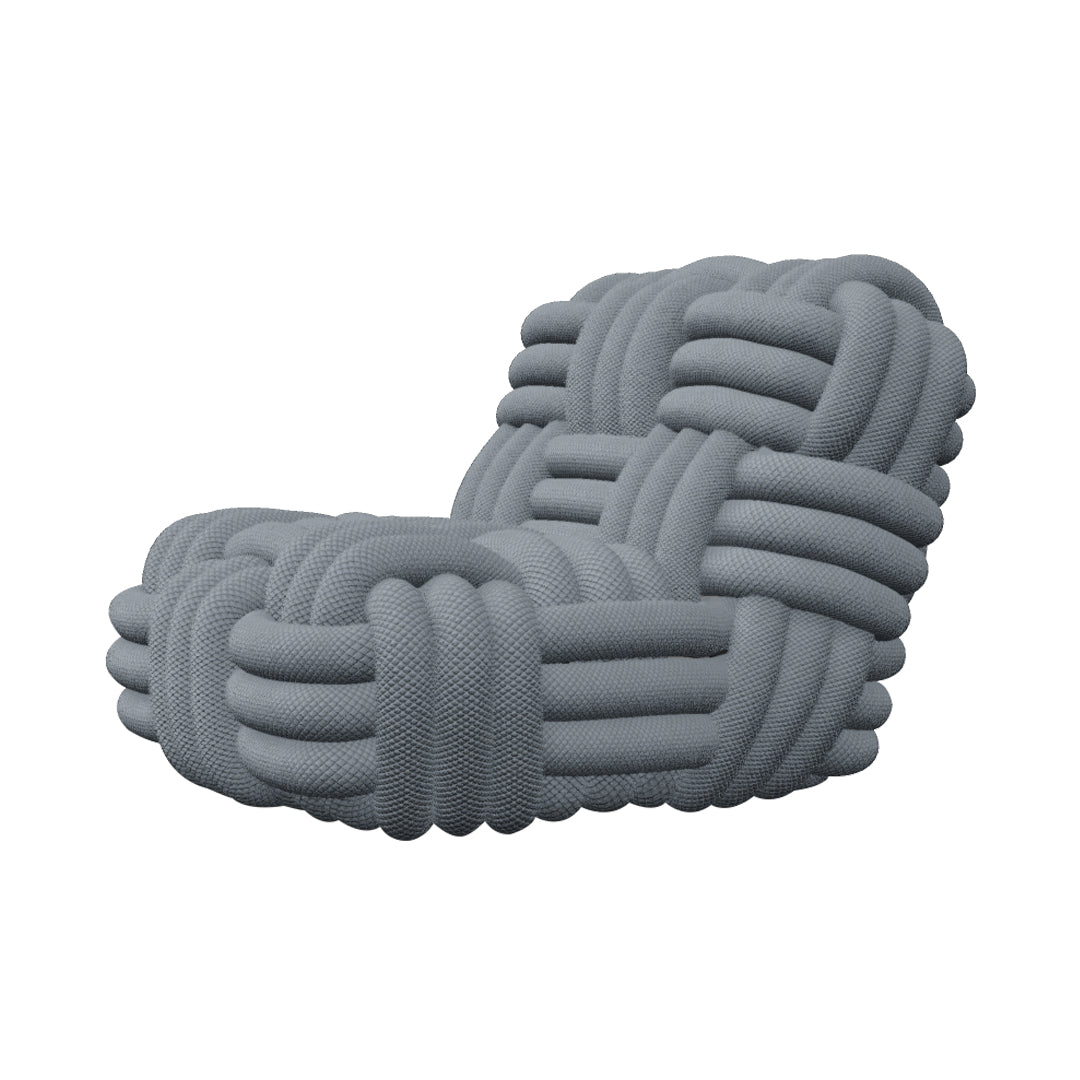 Knitty’s conversation-piece contours are created with jumbo “ropes” inspired by nautical knotting as envisioned by Slovenian designer Nika Zupanc. The over-scaled lounge chair offers remarkable softness and tactile luxury via its knitted upholstery fabric in a palette of refined colors, perfect for curling up with a book, binging on TV or simply daydreaming.