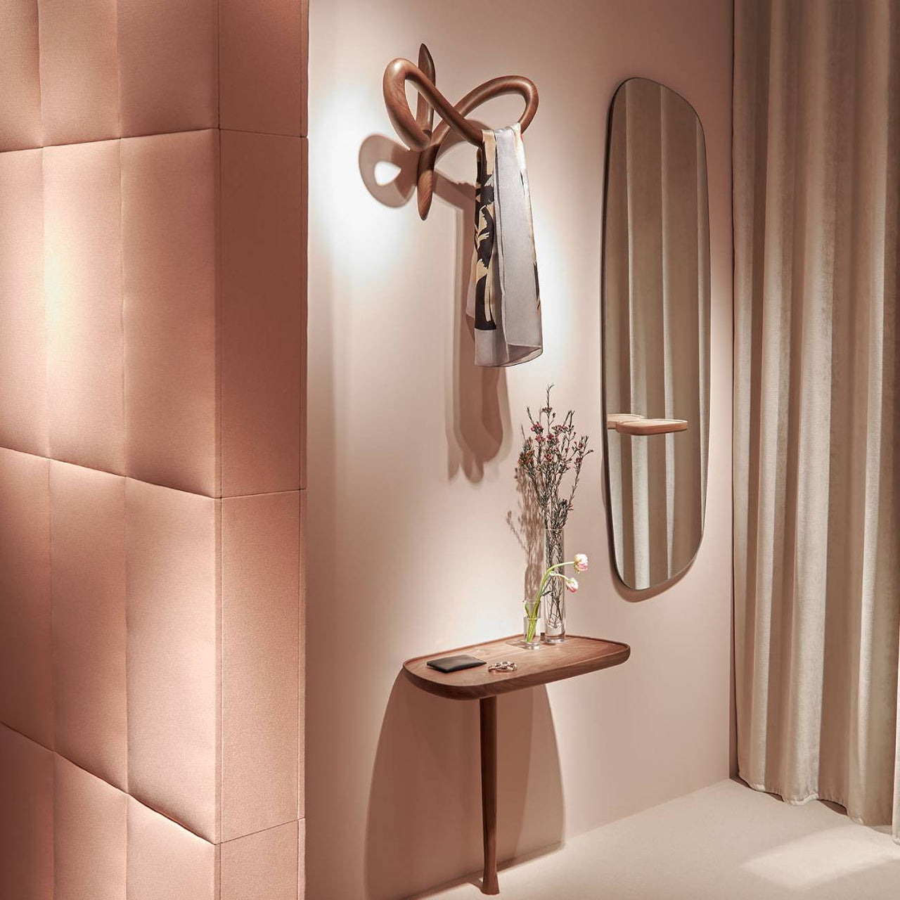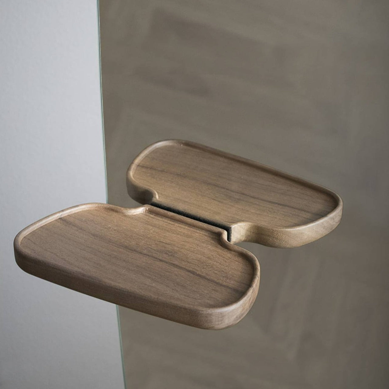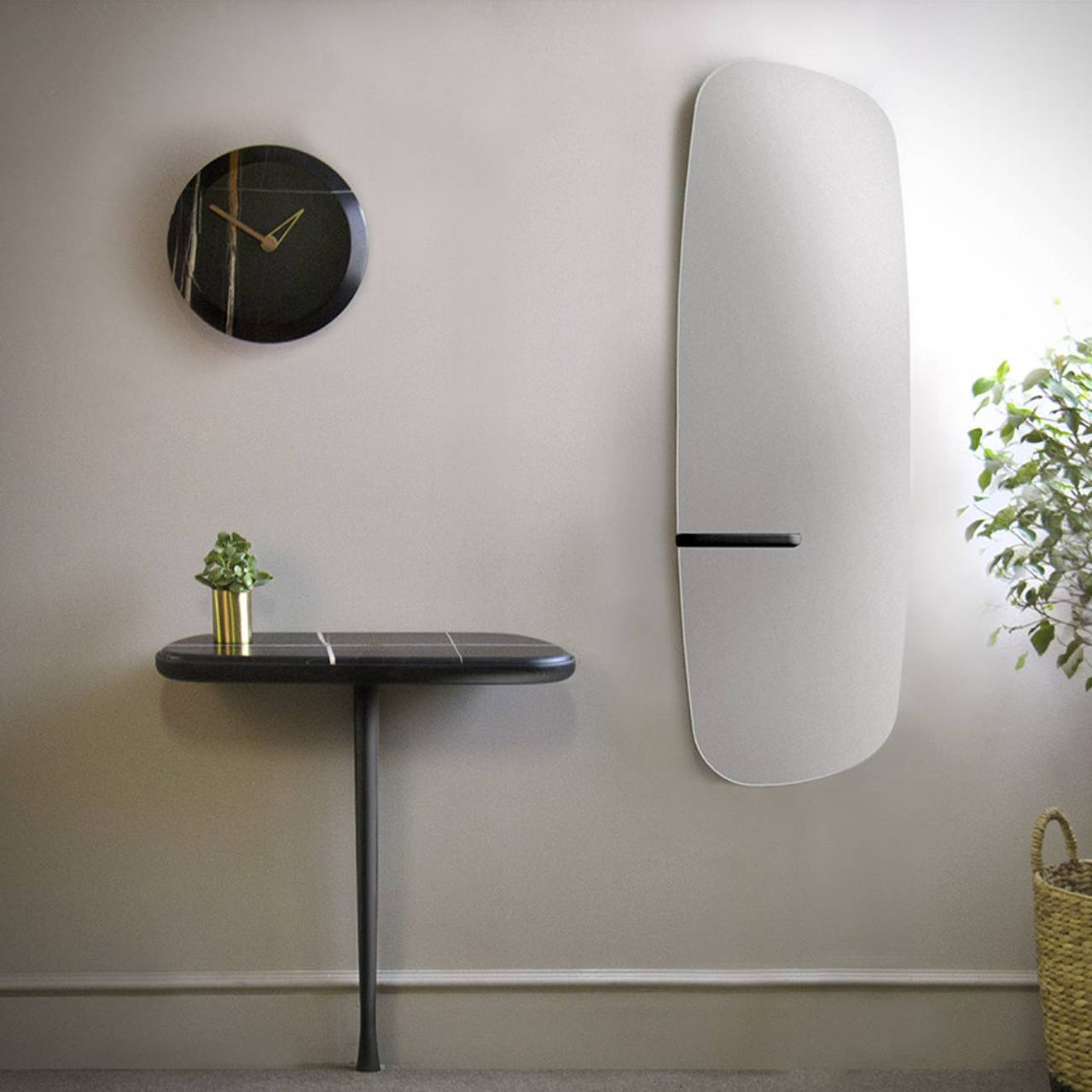With an intriguingly asymmetrical shape, Nomon Homes offers Wall Mirror for taking a self-assuring last look in the dressing area or entry hall. Designer Andrés Martínez bisects his lozenge-like looking glass with a handmade wooden shelf for holding jewelry, pocket change or other bits and bobs. These complementary elements coalesce to provide another distinctive example of the Barcelona boutique maker's furnishings as "jewelry for the home."