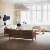Designed in collaboration with Norm Architects, the repetitive sticks of the back and the paper cord braided armrests are inspired by patterns found in classic bamboo constructions and tatami mats. The deep and low sofas are created for a lounge environment and the beautiful rear structure ensure that they are perfect not only against a wall, but also in the middle of a space.