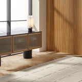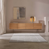 Chicago Rug's facade-like pattern is suggested by Midcentury architecture and its seamless, repetitive construction techniques. Reflecting the namesake city's industrial take on modernism, the hand-knotted area rug is fashioned in a combination of high-quality New Zealand wool and Lyocell for a discreet shine. Employing exacting artisan craftsmanship and offered in lush bone or charcoal colorways, the rug comes in a choice of sizes and adds a sophisticated finish to any space.