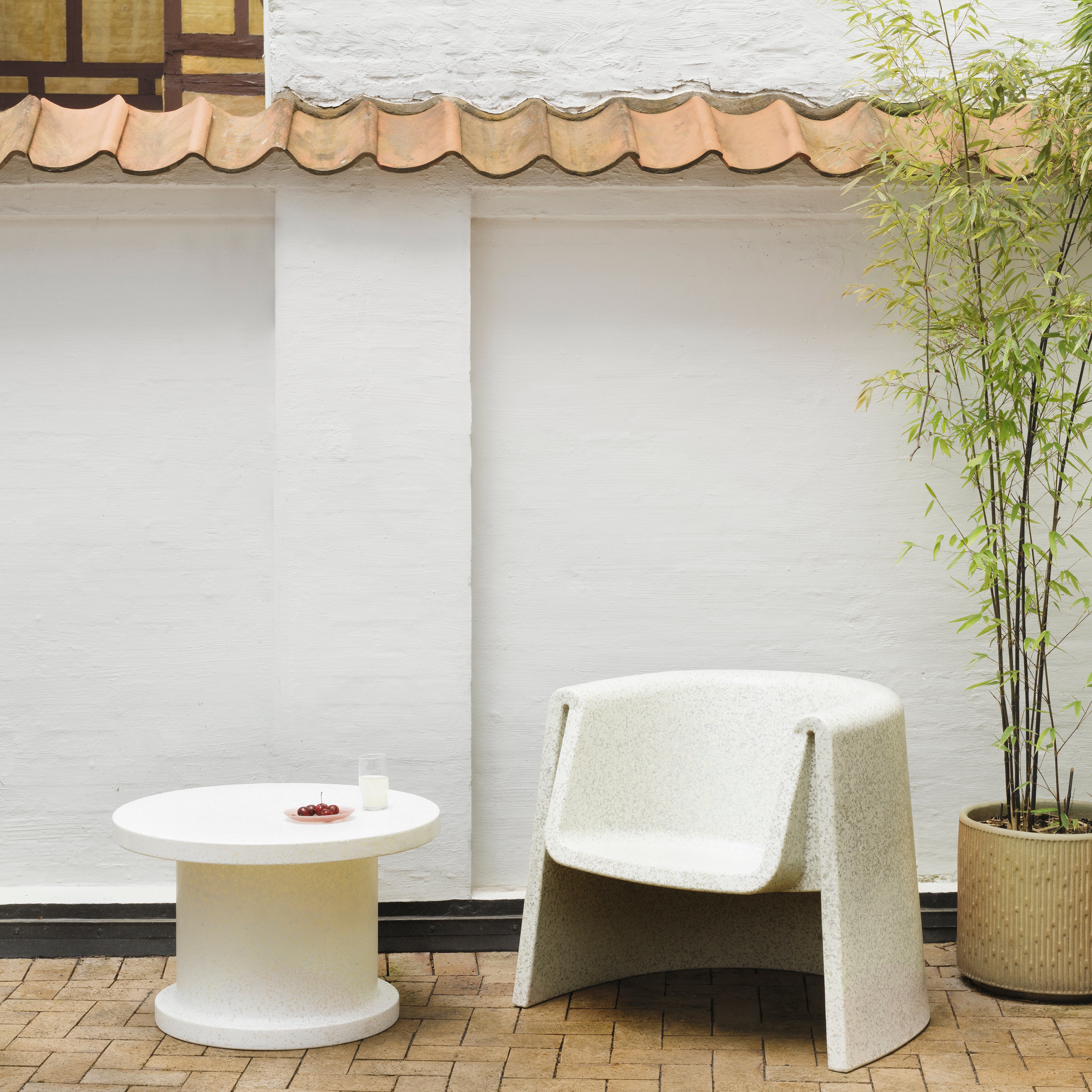 The Bit family grows with the Bit Coffee Table from Simon Legald for Normann Copenhagen. This unique table is crafted using 85-95% recycled household and industrial plastic waste, which gives it a distinctive pixelated surface. Each piece boasts slight variations in color and pattern, ensuring that no two tables are identical. The Bit Coffee Table features a monolithic design and is versatile enough to be used both indoors and outdoors. The rotational molding process used in production ensures both strength and eco-conscious durability. This table complements other pieces in the Bit collection, such as stools and side tables, making it ideal for creating cohesive design setups in homes or hospitality spaces.