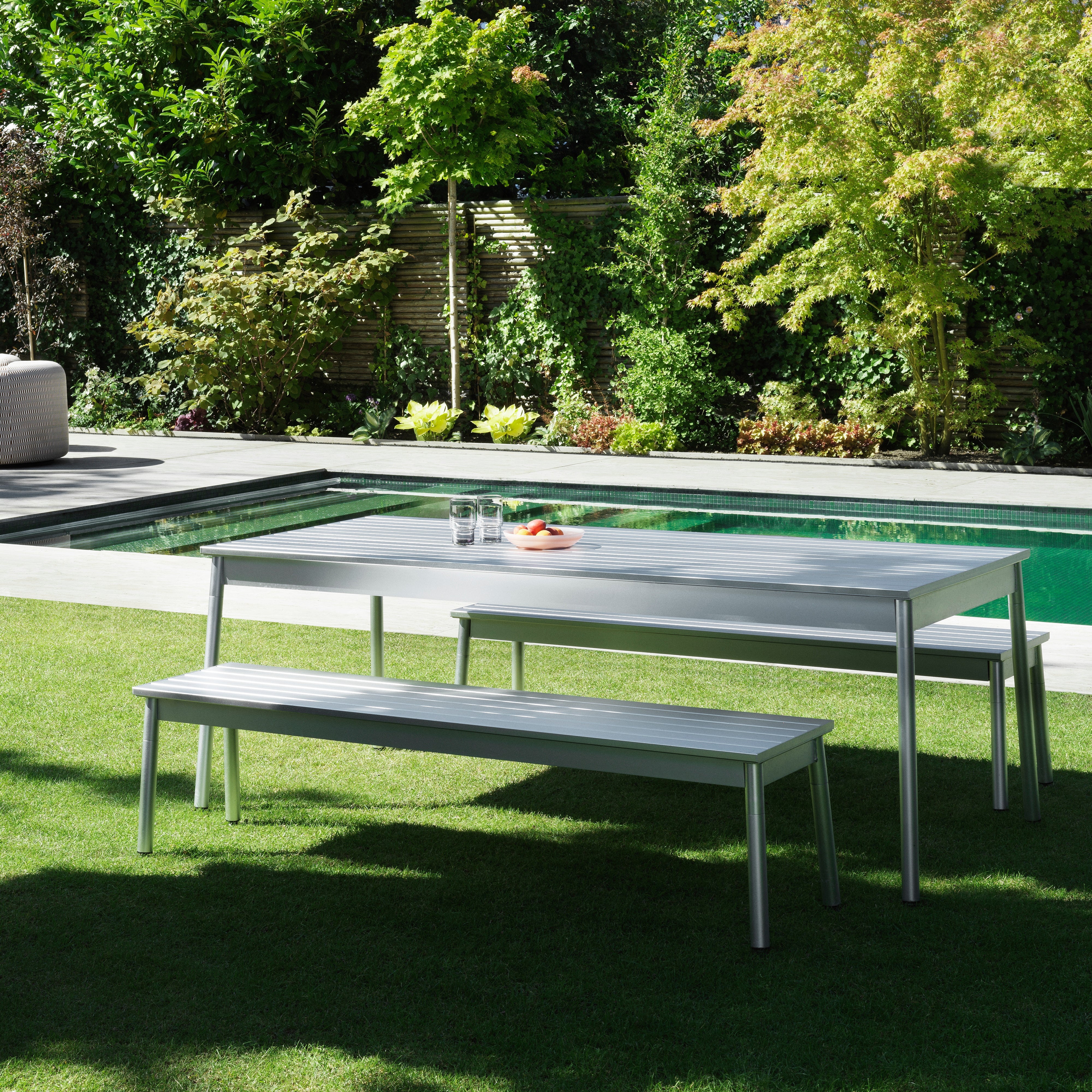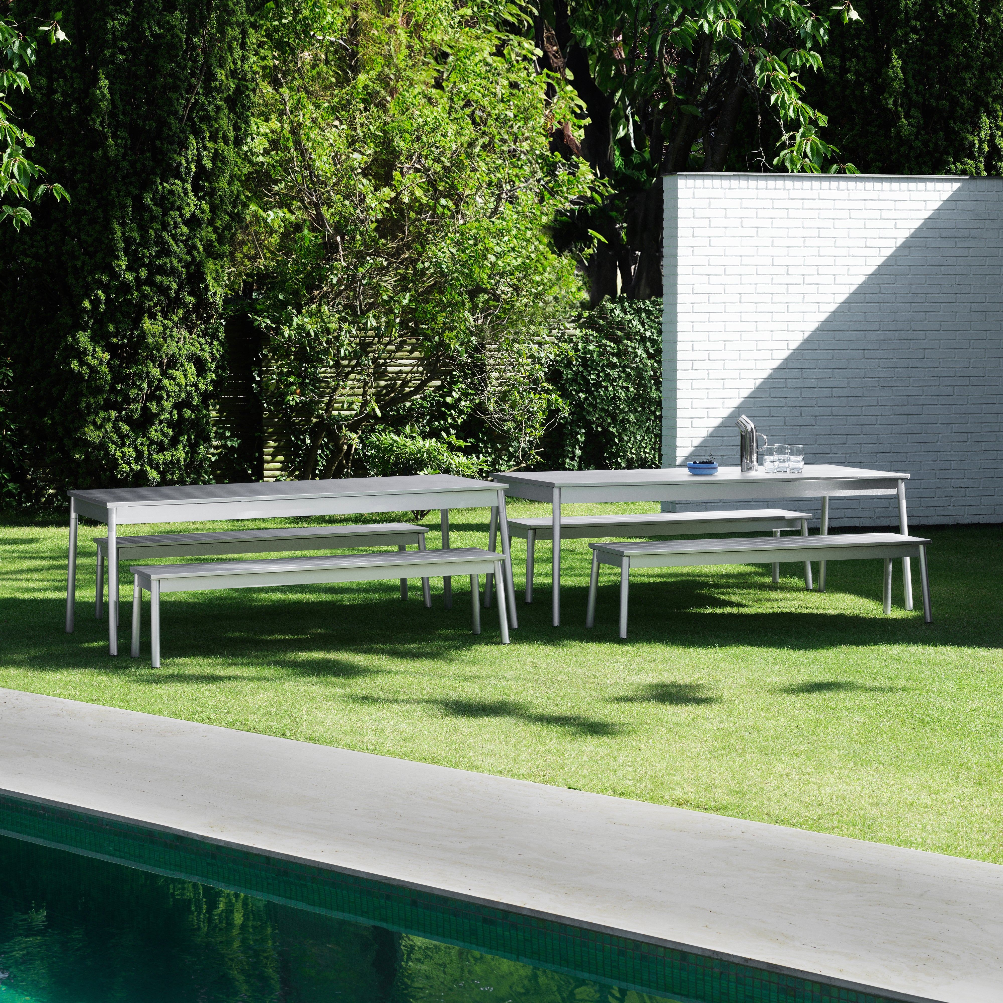 This outdoor table combines a simple, clean design with a sturdy frame, ideal for withstanding outdoor elements. Its solid construction makes it perfect for use on patios, gardens, or terraces, providing ample surface space for meals and gatherings. The table’s durable build ensures it stands up to sun, rain, and wind, while its understated style allows it to fit naturally into a wide range of outdoor settings.