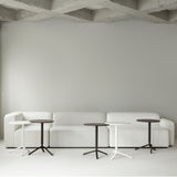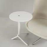 Rising or lowering at the touch of a button, this versatile side table adapts effortlessly—whether by the sofa, bedside, or as a compact workspace. Its sculptural base with a gently curved support offers both visual lightness and structural stability, anchored by a powder-coated steel frame and PU-coated MDF top.