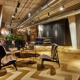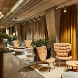 The Elephant Lounge Chair, in its front-upholstered version, takes inspiration from the classic 1950s Danish upholstered chairs and Japanese design aesthetic. Its defining feature is the broad, elephant ear-shaped backrest, which provides both visual appeal and a supportive embrace for the user. The oak veneer shell is compression-molded, curving gently to provide ergonomic support. This piece is hand-crafted using FSC-certified oak, highlighting Norr11s commitment to sustainability. Available in 4 oak finishes.