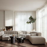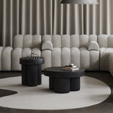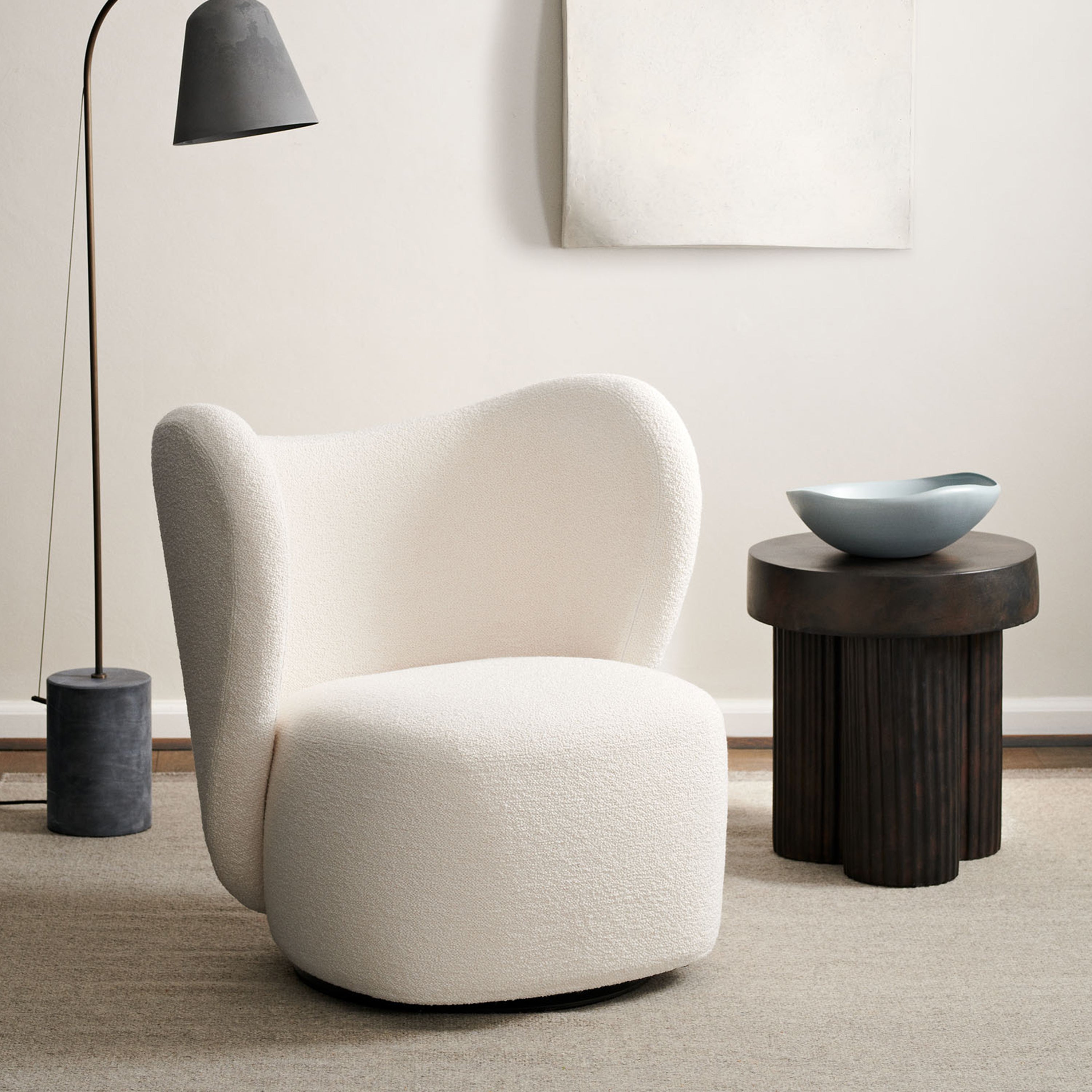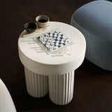 The Gear Side Table is a sculptural piece inspired by mid-century Brutalist architecture. Designed by Kristian Sofus Hansen and Tommy Hyldahl, it features a circular top supported by three cylindrical, fluted legs. Made from fiber-reinforced concrete, the table has a tactile, stone-like texture, giving it a rugged yet refined look. Each table is hand-painted and unique, available in earthy tones Chalk and Earth.