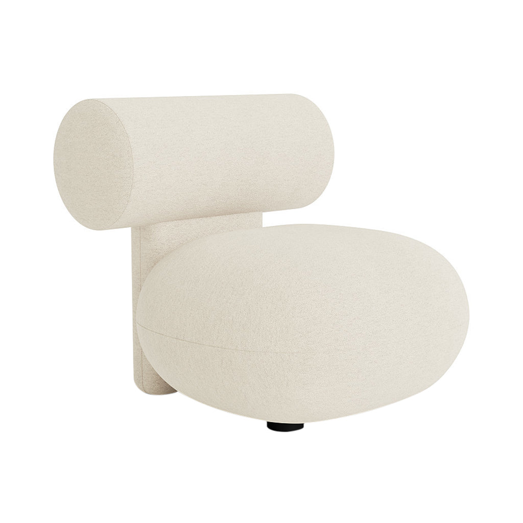 The Fully Upholstered Hippo Lounge Chair offers a soft, enveloping seating experience, with its entire frame covered in a curated range of luxurious fabric. Designed by Kristian Sofus Hansen and Tommy Hyldahl, this chair maintains the playful, rounded shapes characteristic of the Hippo series. The fully upholstered seat and back are generously padded with foam, making it exceptionally comfortable. The distinctive wooden legs, also upholstered in fabric, add to the chairs cohesive look and give it a modern, sculptural feel.