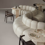 The Jagger Dining Modular Sofa takes cues from iconic furniture styles and sunken lounge layouts, reinterpreted with bold, rounded shapes and modular designs. With a higher seating position tailored for dining settings, the collection includes ten modules, single, double, corner, curved, and half-circle segments, enabling creative and seamless seating arrangements. Handcrafted in Northeast Italy by a family-owned upholstery company, the sofa features a durable plywood frame and cold-cure foam for lasting comfort. Suitable for both residential and commercial spaces.