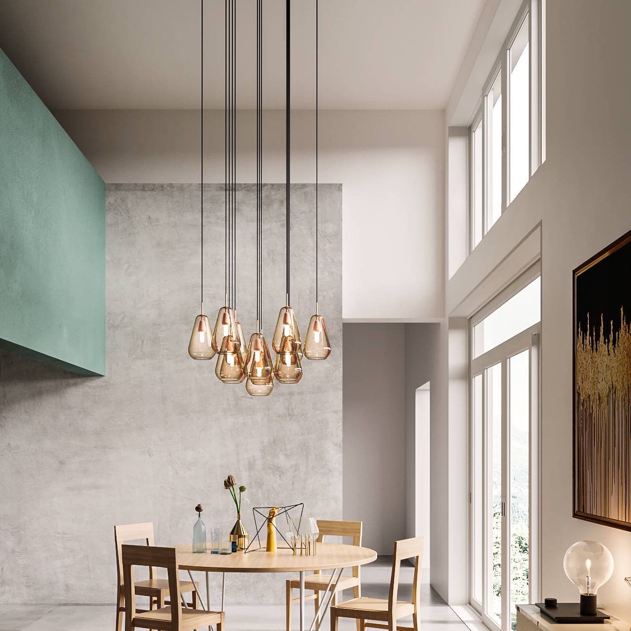 Whether is is Anoli’s elegant drop motif inspired by a rainy day during autumn or Blossi’s futuristic domed shapes, each grouping extends to pendants, table lamps and wall fixtures. “I like repetitions a lot,” Sofie says. “There are repetitions everywhere in the nature, and they just bring certain calmness to a room, connecting things.”