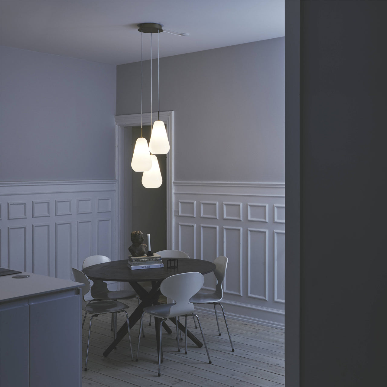 Whether is is Anoli’s elegant drop motif inspired by a rainy day during autumn or Blossi’s futuristic domed shapes, each grouping extends to pendants, table lamps and wall fixtures. “I like repetitions a lot,” Sofie says. “There are repetitions everywhere in the nature, and they just bring certain calmness to a room, connecting things.”