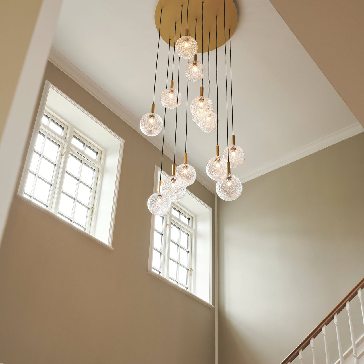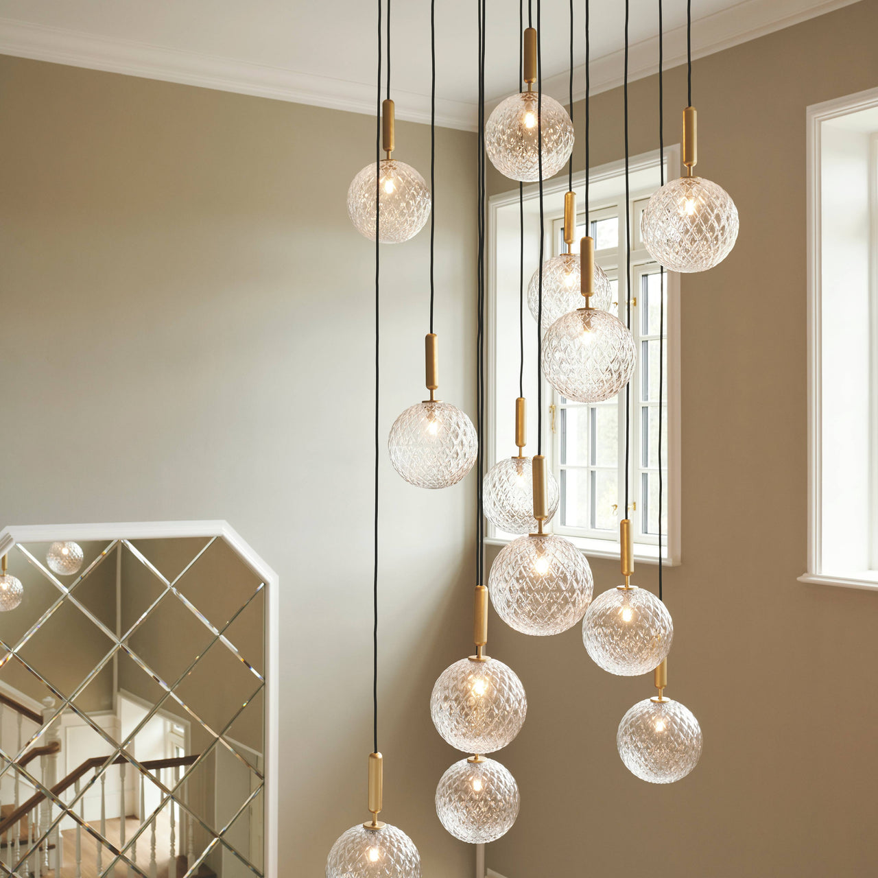 There's more than luck of the draw behind this tour-de-force modernist chandelier from Danish design house Nuura. Ablaze with 13 luminous globe lights in a choice of either milky opal glass or clear glass with a unique embossed pattern, it's a testament to the artistry of the brand's acclaimed designer Sofie Refer. With her unique modernist style, individual Miira pendants are each mounted on a subtly hued dark-grey metal cylinder, together allowing for a bedazzling display that grandly suits larger interior spaces.