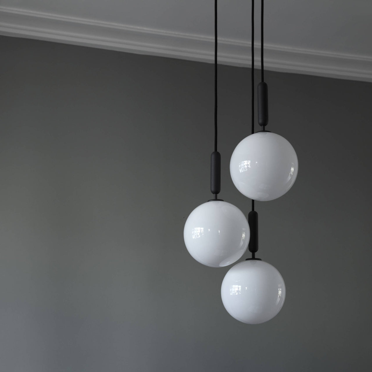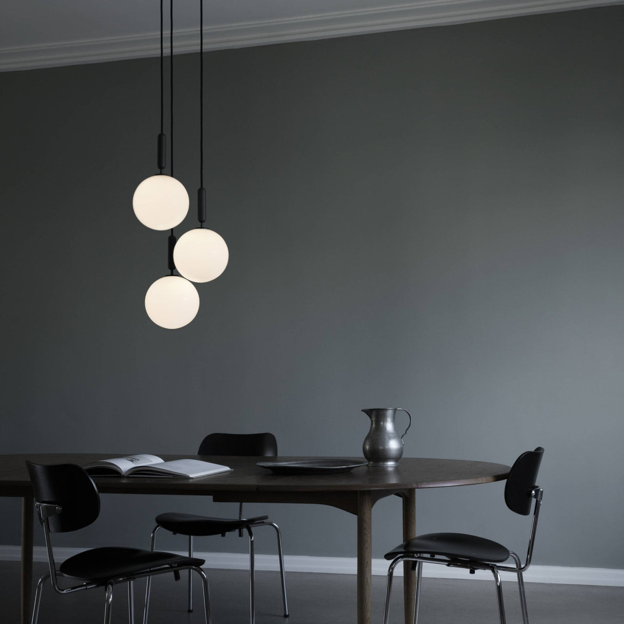 Danish brand Nuura goes for a triple play with its handmade globe light Miira 3. Hewing to the original's lyrical simplicity, the pendant features a trio of larger glass orbs in mouth-blown opal glass that create a gorgeous contrast with the dark grey metal structure. With her keen eye for balance and form, designer Sofie Refer offers a masterful glowing presence to illuminate a dining table or room corner.