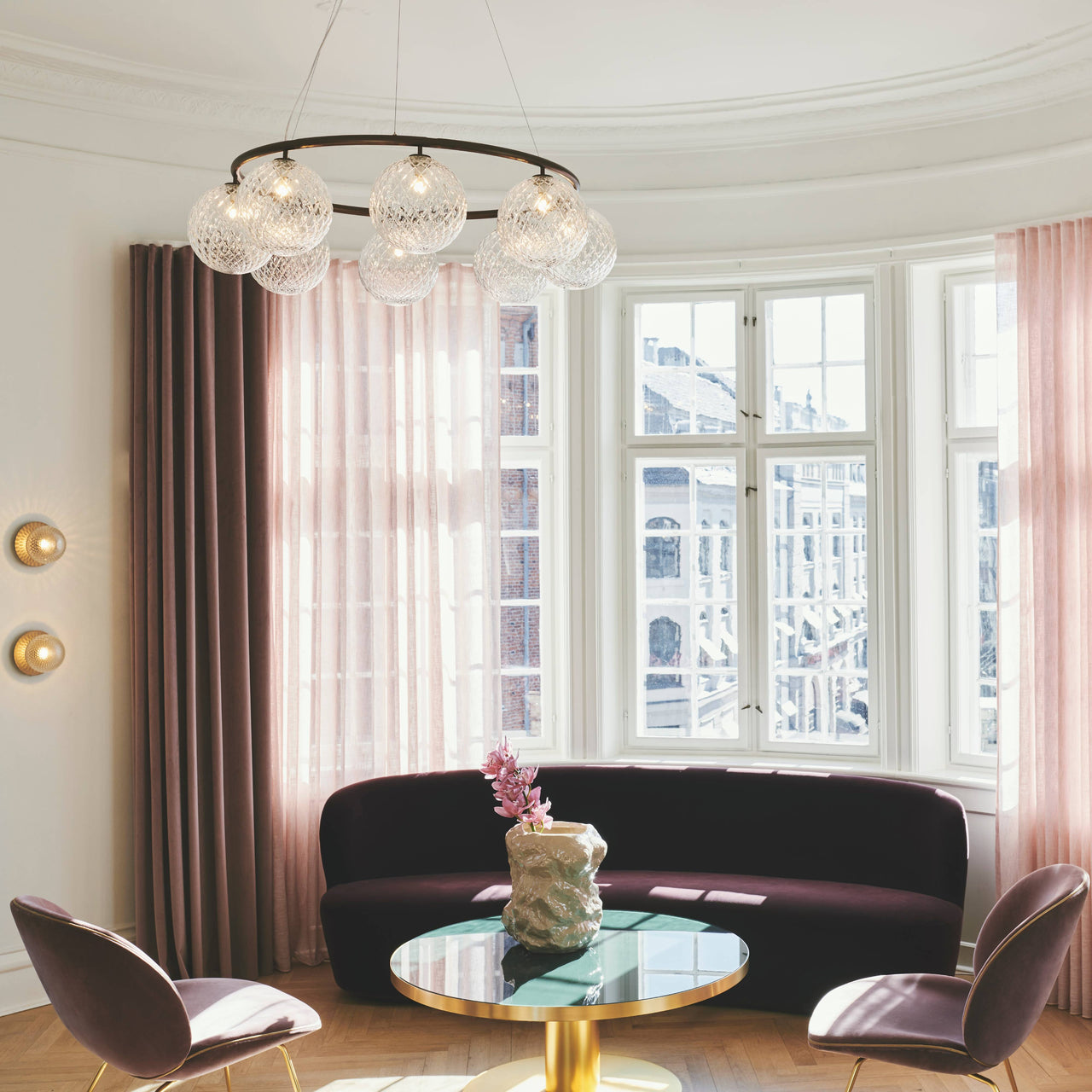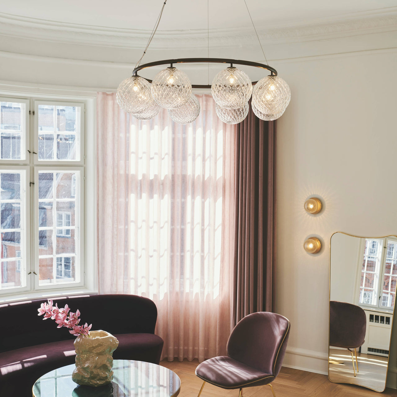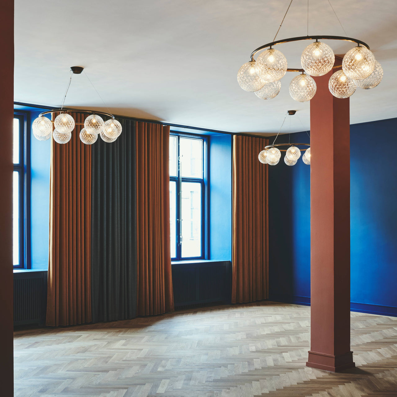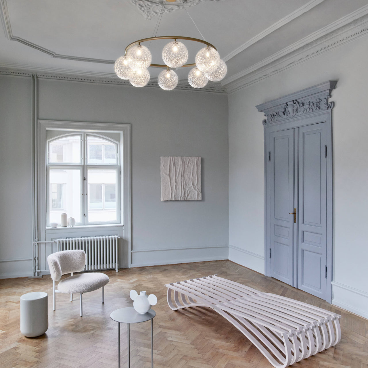 Nuura is an emerging Danish lighting brand that creates eclectic collections that each revolve around an updated chandelier. Cofounder Sofie Refer (alongside Nadia Lassen and Peter Østerberg) says, “For me, chandeliers are a beautiful symbol of generosity, a piece of art. That is why I always design a family of products around a chandelier.” Inspired by the fabled Nordic light, the company’s offerings meld time-honored artisanal techniques like mouth-blown glass with state-of-the-art technology.