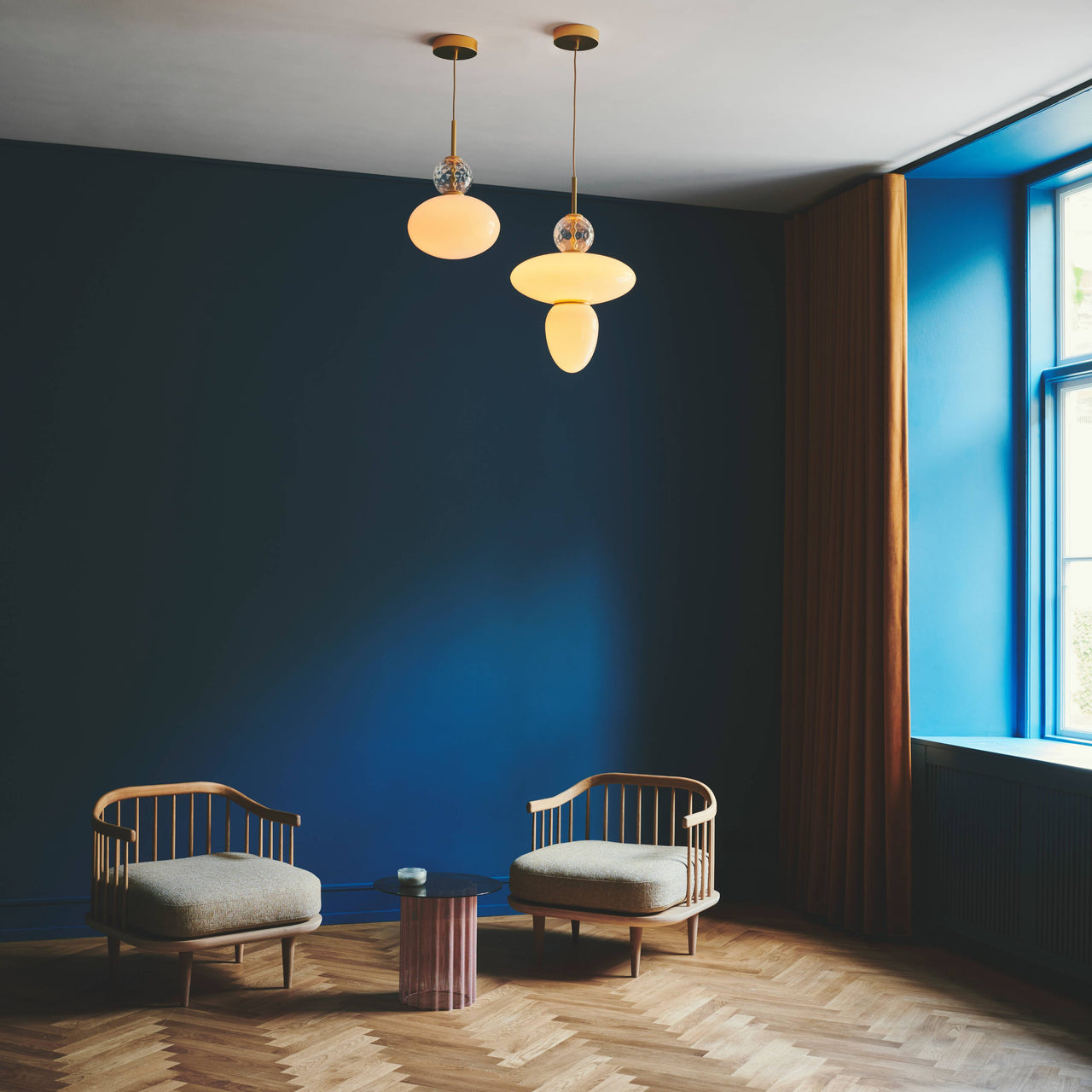 Whether is is Anoli’s elegant drop motif inspired by a rainy day during autumn or Blossi’s futuristic domed shapes, each grouping extends to pendants, table lamps and wall fixtures. “I like repetitions a lot,” Sofie says. “There are repetitions everywhere in the nature, and they just bring certain calmness to a room, connecting things.”