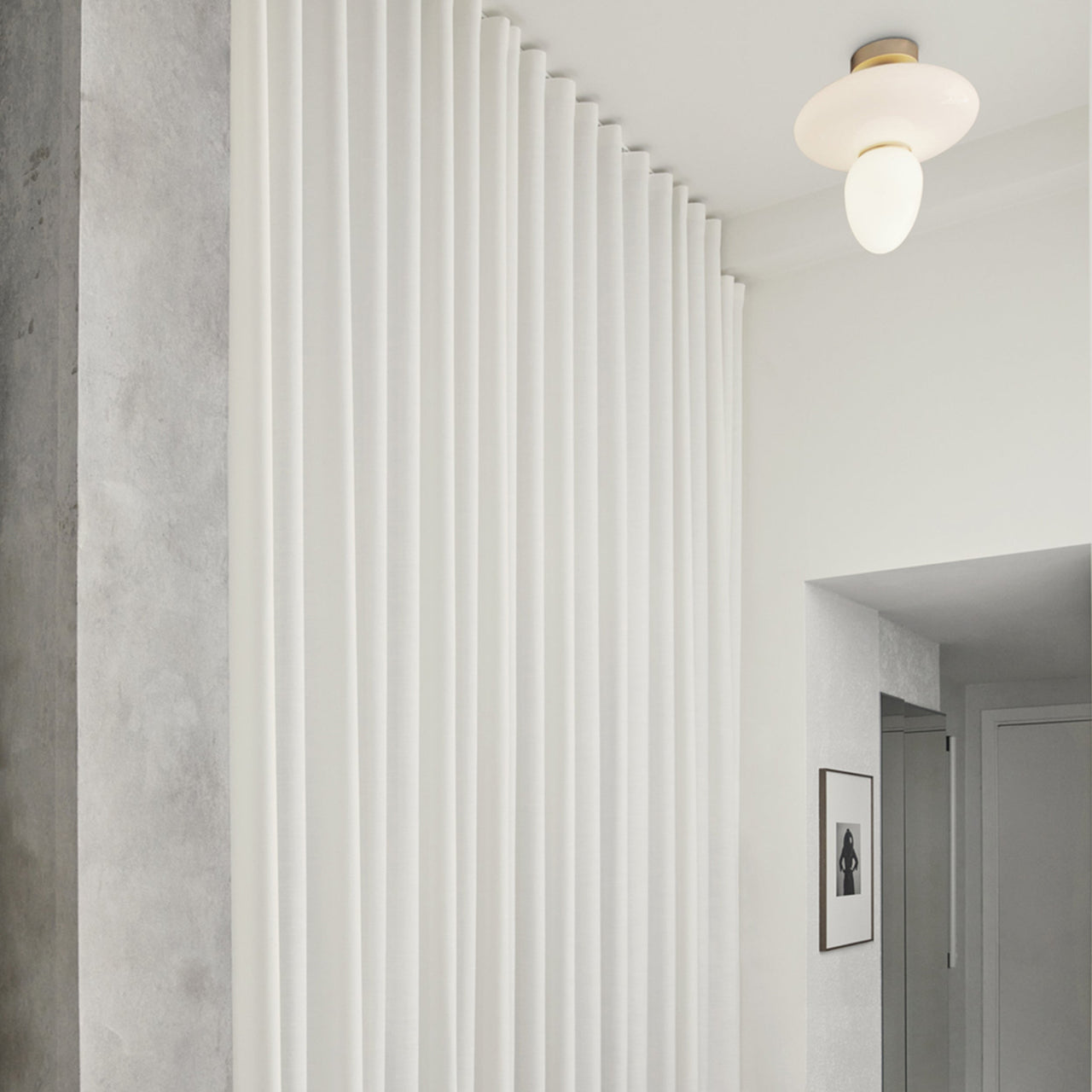 An extension of the refined pendant series, Rizzatto 42 brings soft and even illumination in the collection's characteristic union of mouth-blown glass and satin brass. Ideal in the bedroom, the kitchen or the hallway, the light is mounted directly on the ceiling, offering a unique overhead fixture. Milanese designer Paolo Rizatto created the range in collaboration with Danish company Nuura, his first independent project since forming his own groundbreaking firm Luceplan in 1978.