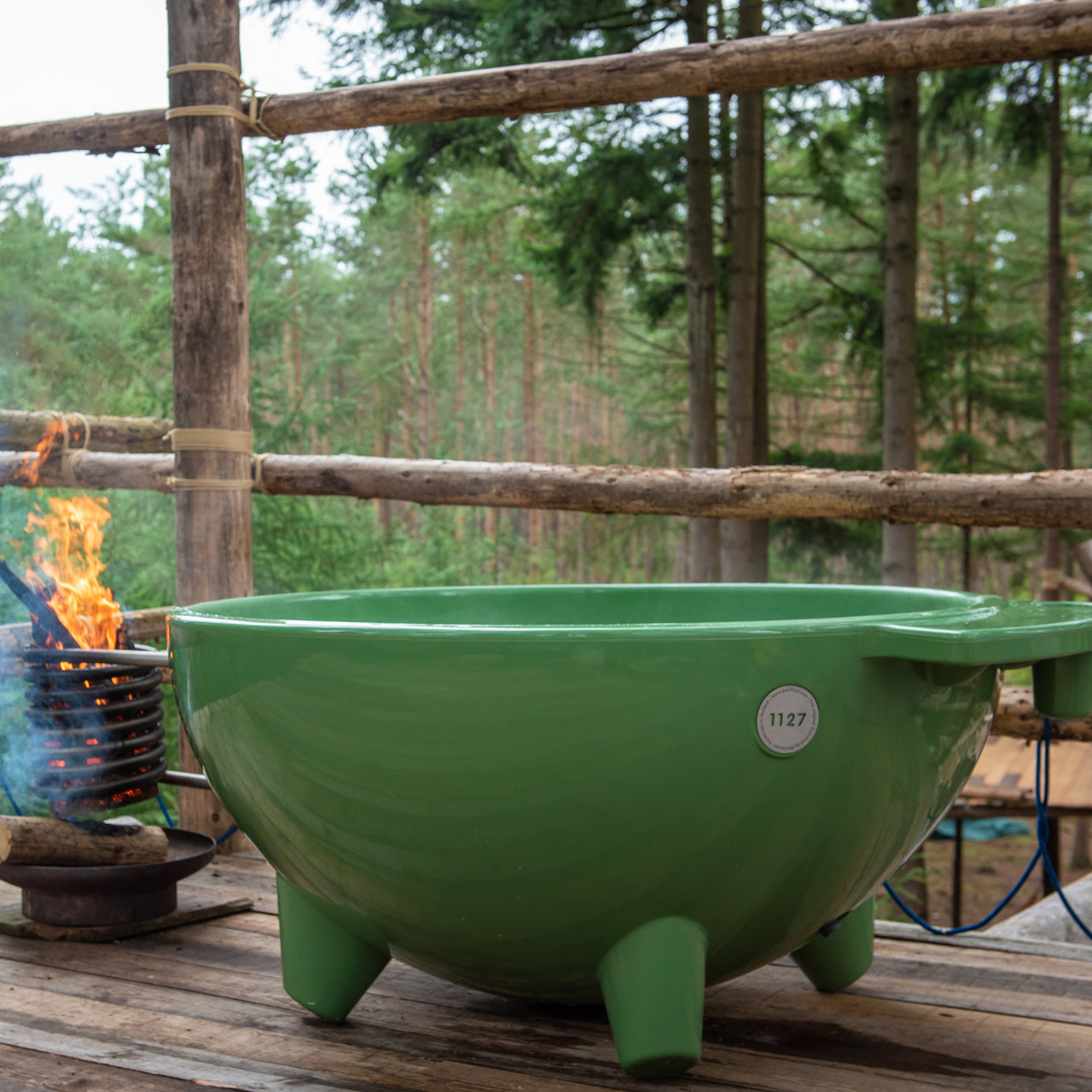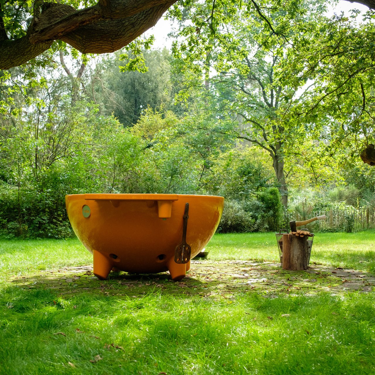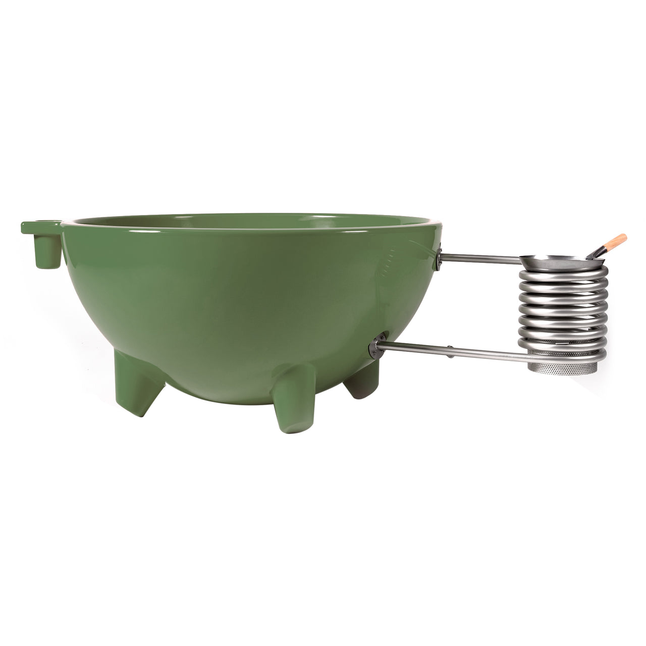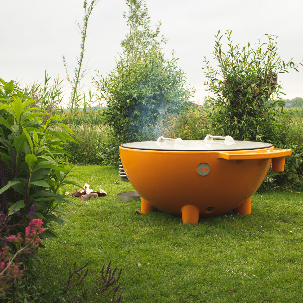 A cheery design icon, Floris Schoonderbeek’s award-winning Dutchtub Original is heated by wood and only uses natural water circulation in a low-tech but ingenious version of a communal hot tub. Heated by a wood-burning fire basket within a superior-grade stainless-steel coil, the water flows into the tub from the top of the coil. Regulate the temperature by simply exposing fewer coils to the heat of the fire to cool or using the wok as a lid to keep more heat within the coils. Handcrafted in a sturdy but lightweight polyester with an ergonomic comfort that suits up to 4 persons, in a range of colors.